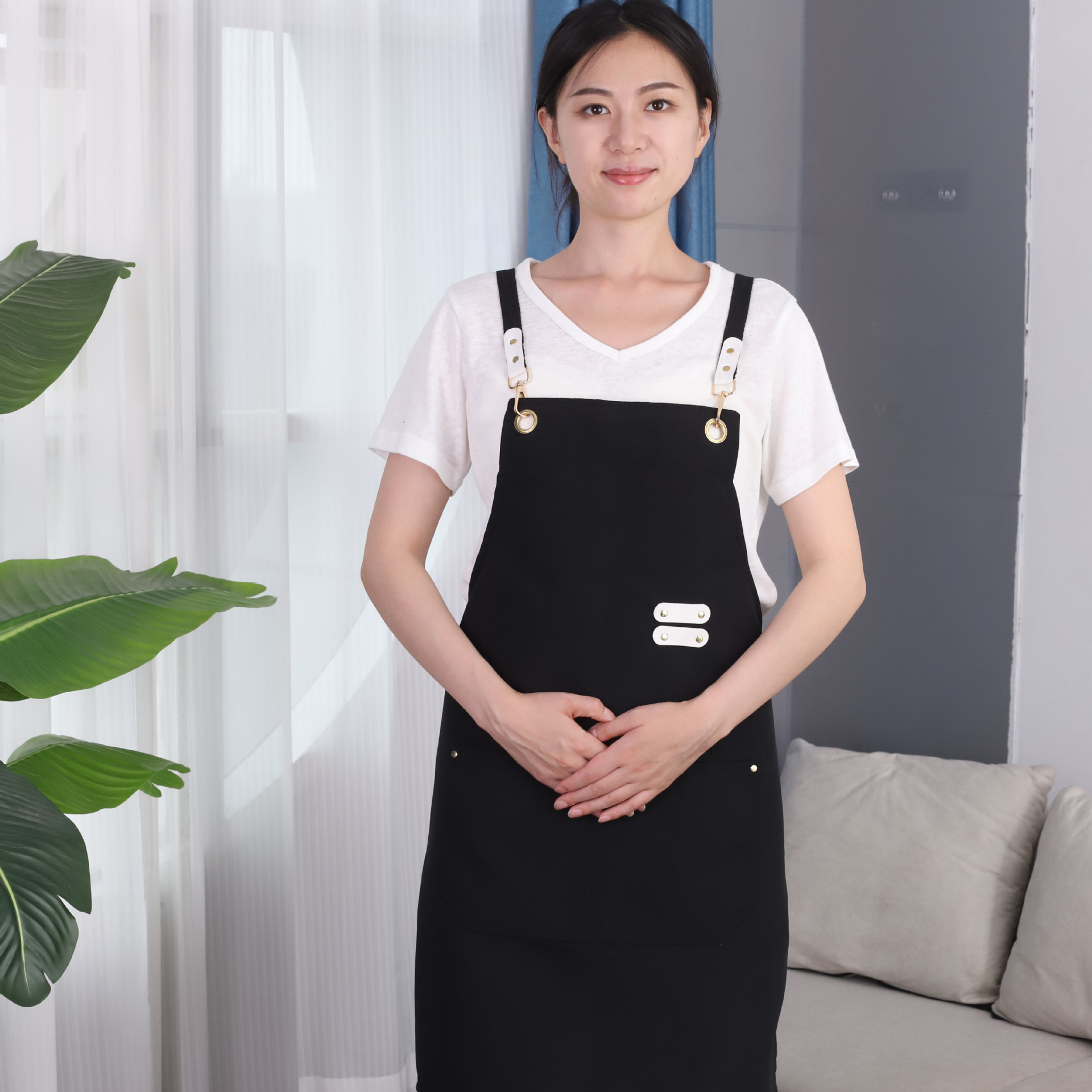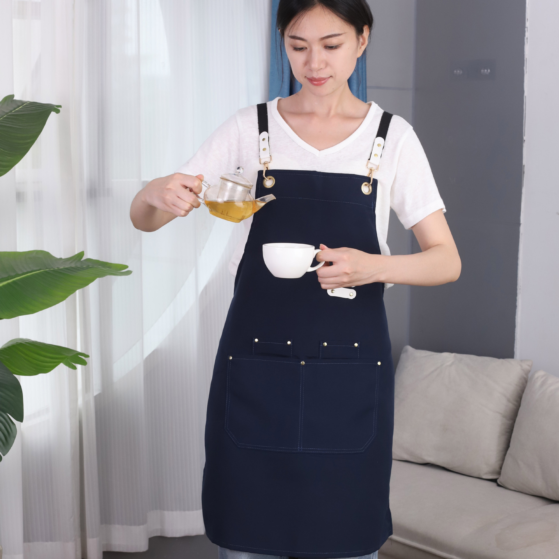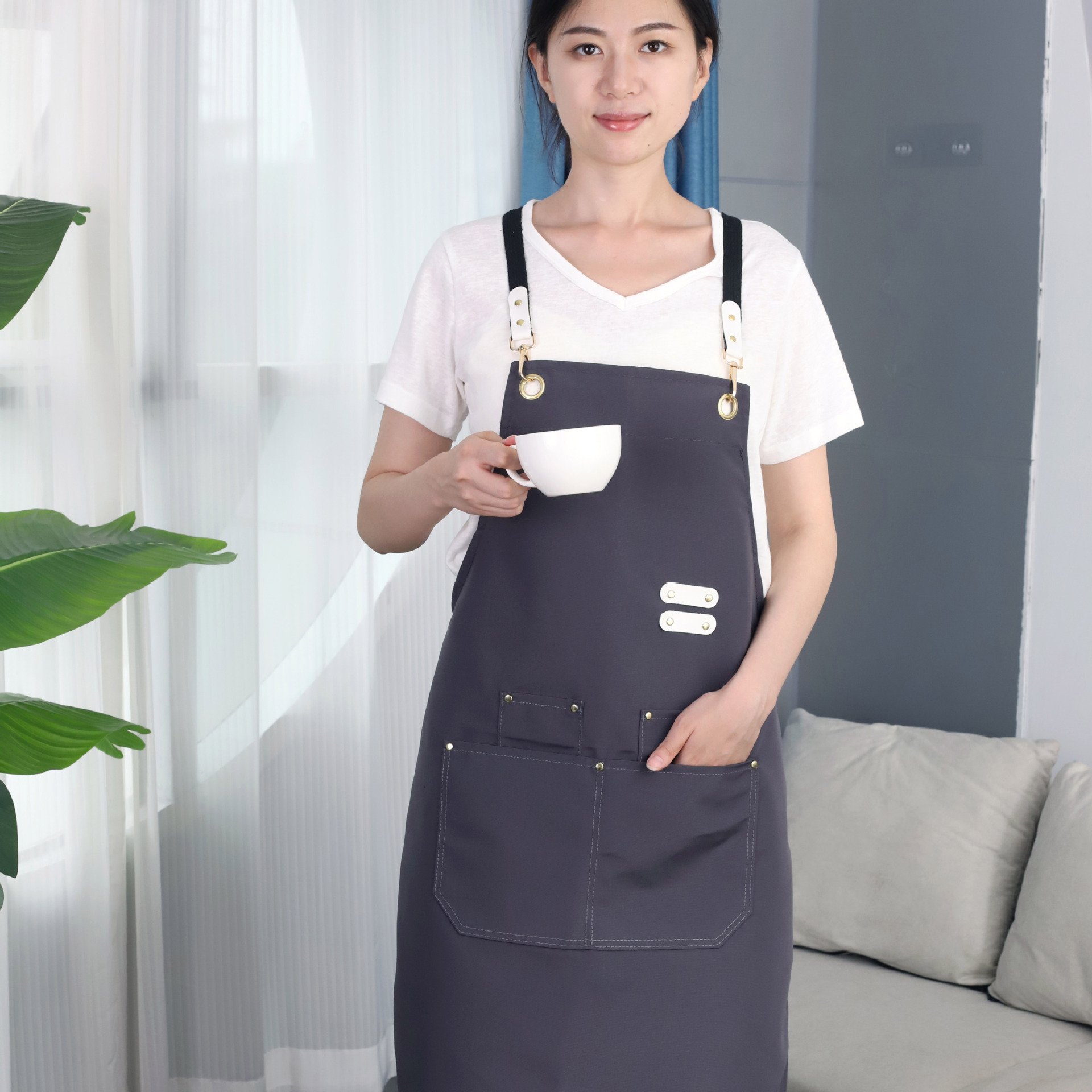 케이터링용 캔버스 앞치마, 로고 인쇄, 호텔 주방, 커피숍, 밀크티 가게, 과일 가게, 여성용 방수 작업복
