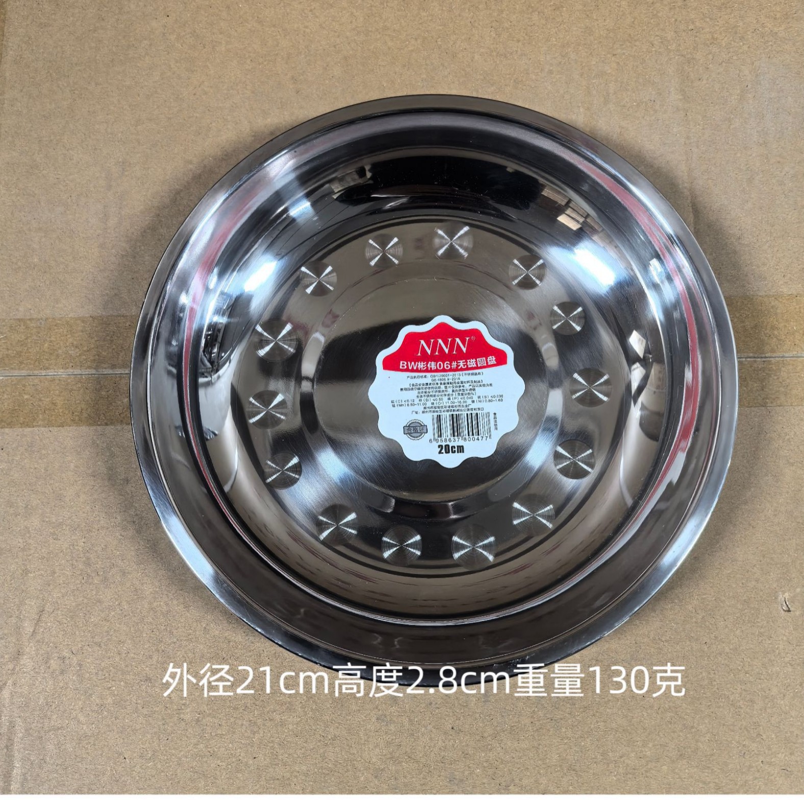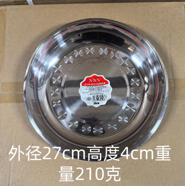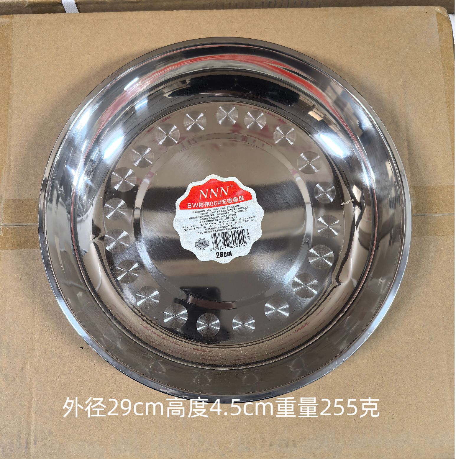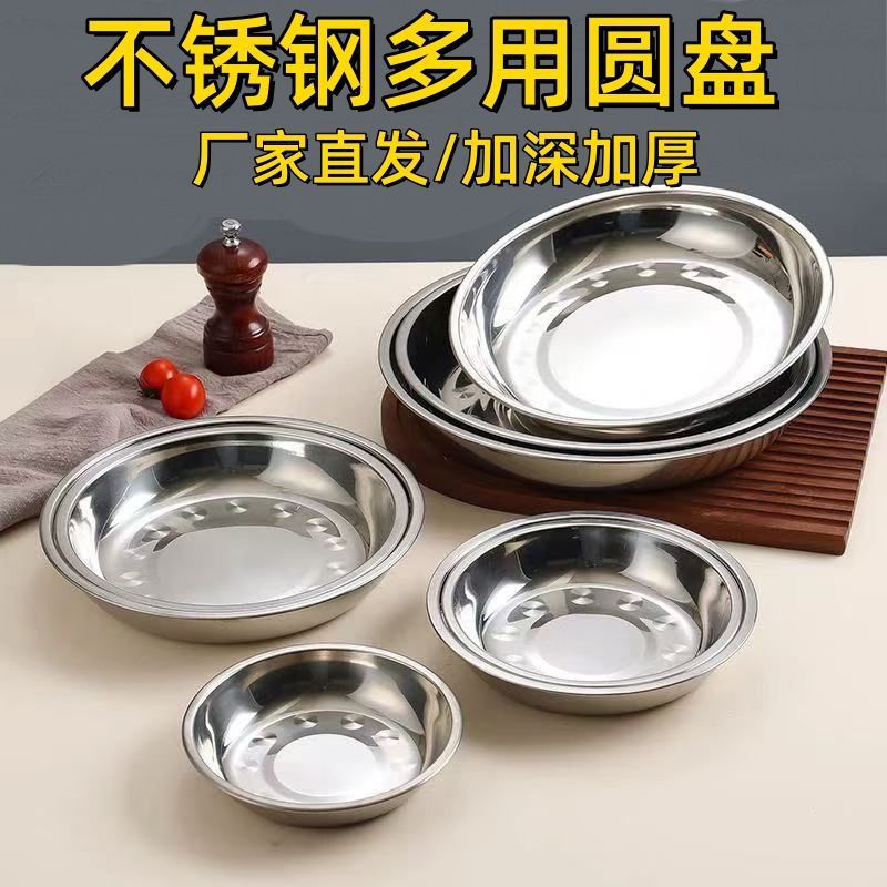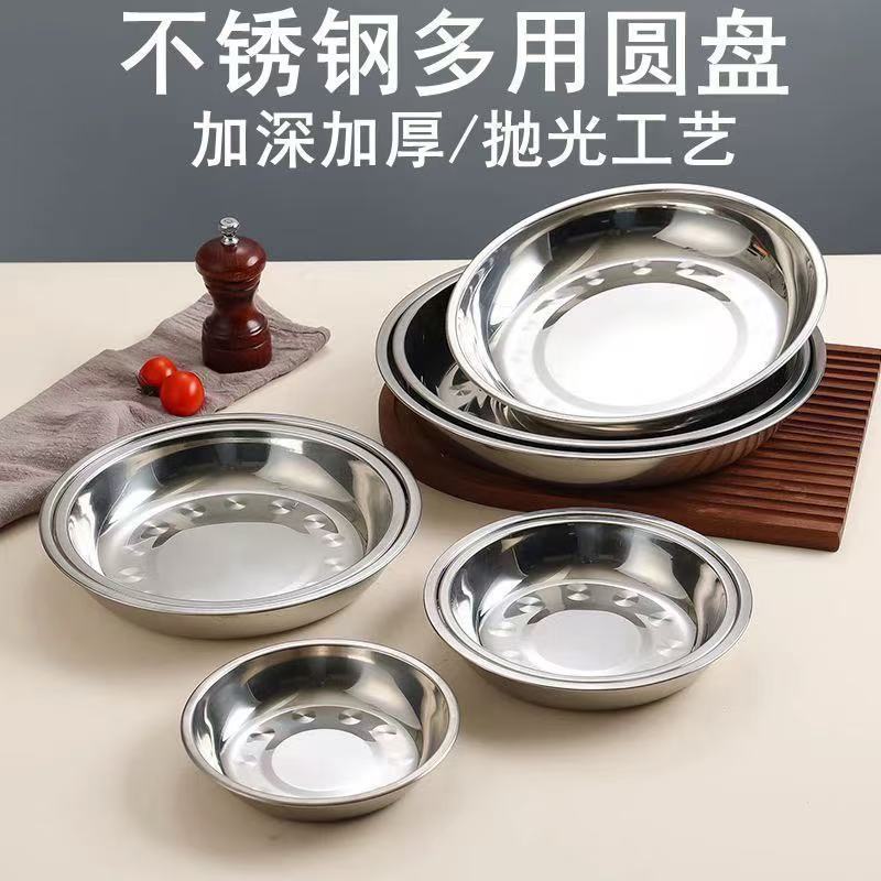 스테인레스 스틸 접시 무료 배송 두꺼운 비 자기 원형 접시 접시 트레이 접시 바베큐 접시 가정용 캔틴 원형 접시 원형 그릇