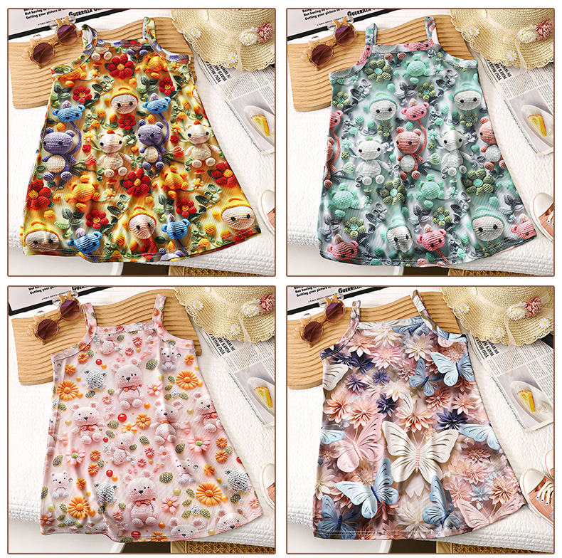 여자 치마 2025 여름 5D 인쇄 민소매 스트랩 스커트 여자 원피스 여자 스트랩 스커트 공주 치마