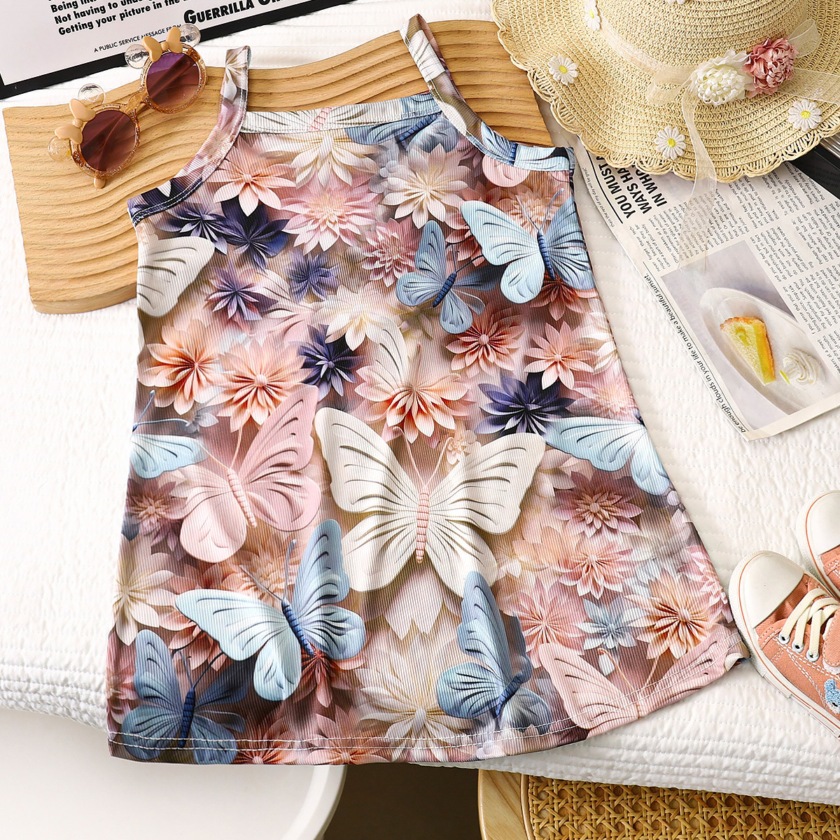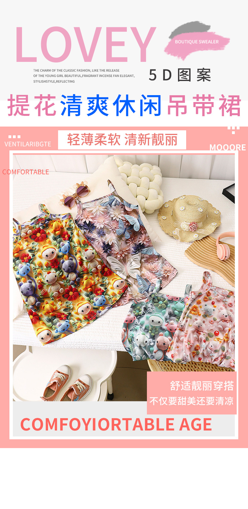 여자 치마 2025 여름 5D 인쇄 민소매 스트랩 스커트 여자 원피스 여자 스트랩 스커트 공주 치마스토어 가기