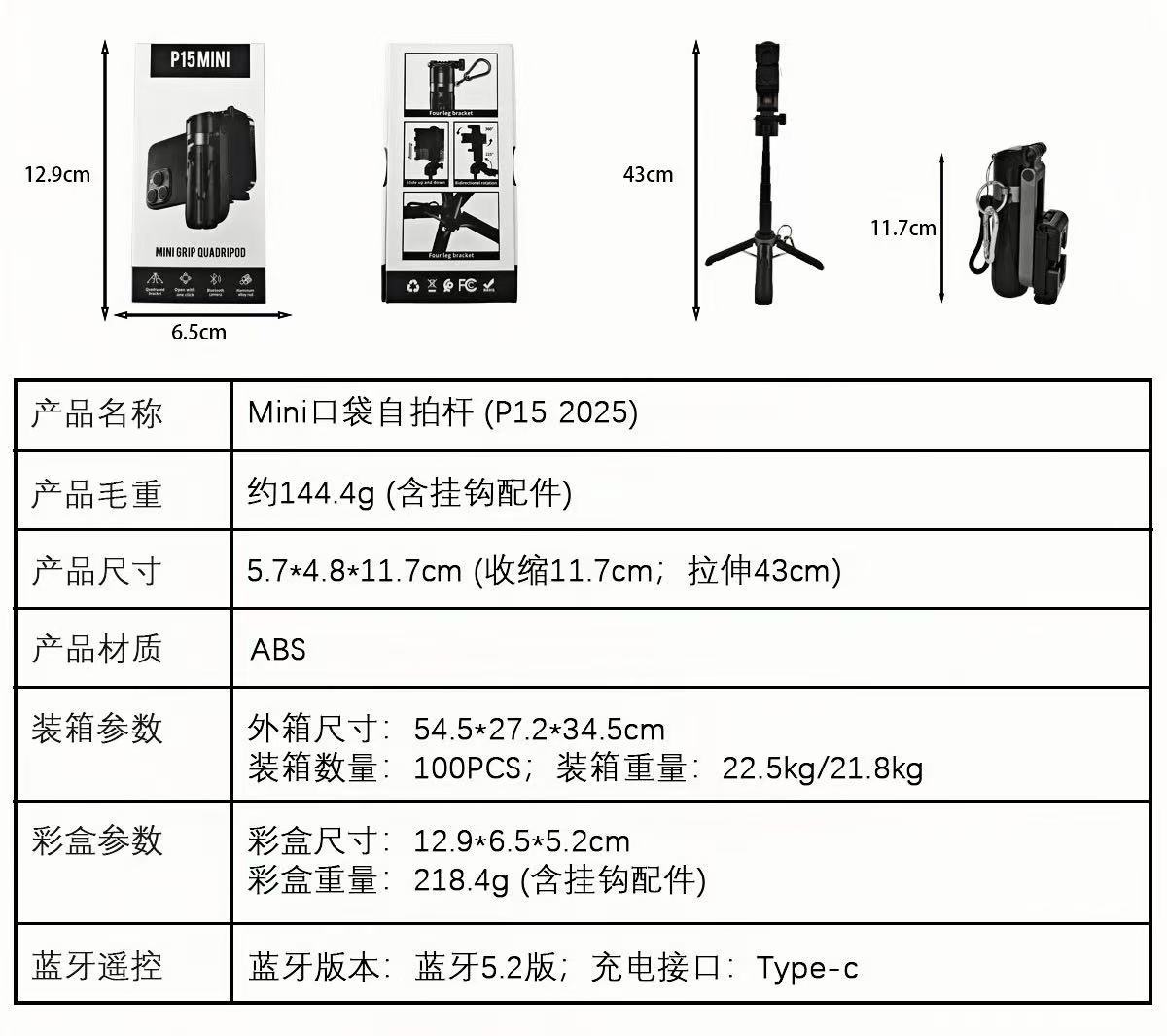 P15mini 미니 셀카 스틱 여행 4 새로운 셀카 라이브 카메라 아티팩트 포켓 휴대용