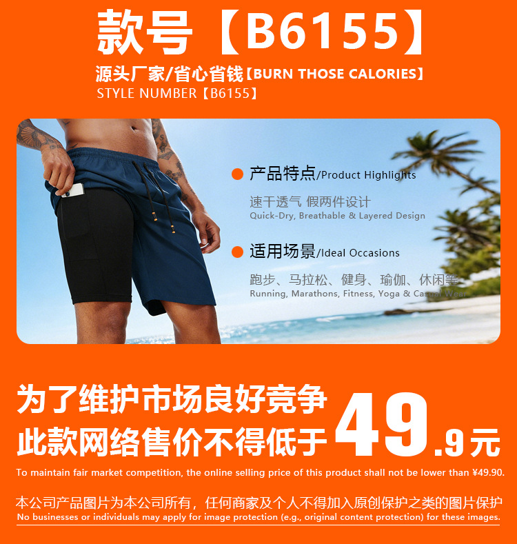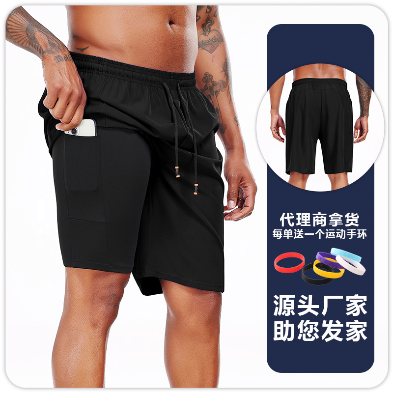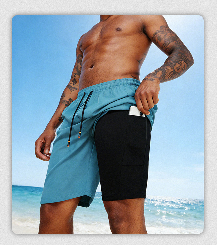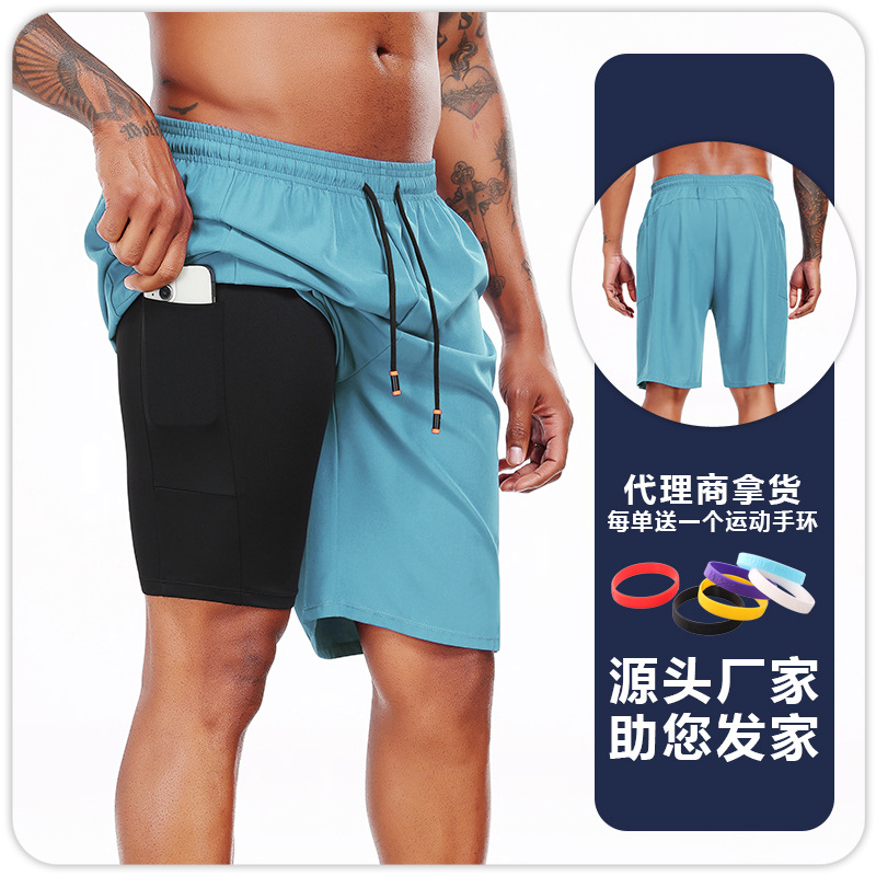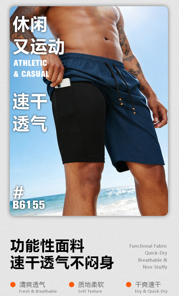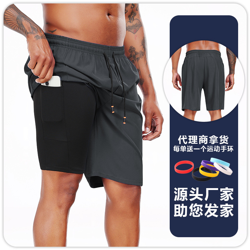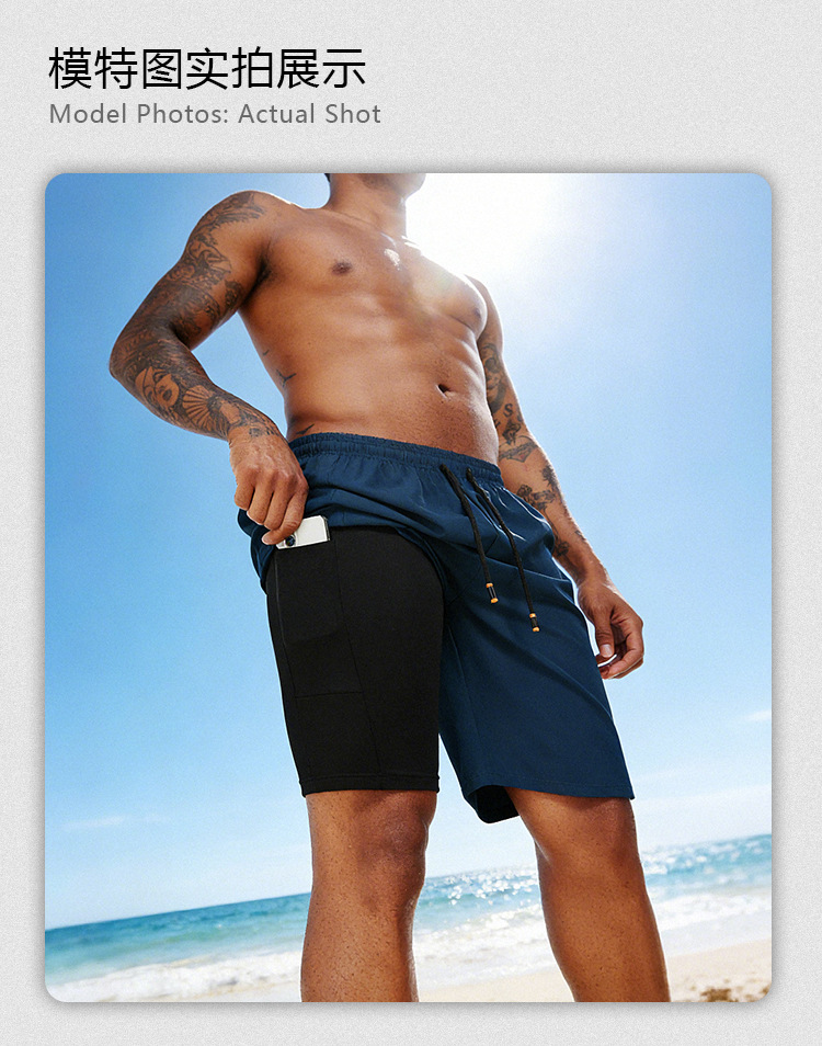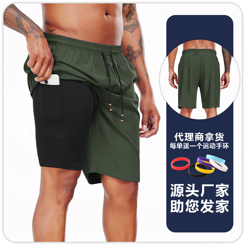 2025 여름 남성용 가짜 투피스 비치 바지 속건성 통기성 얇은 캐주얼 스포츠 야외 트렌디 5부 바지스토어 가기