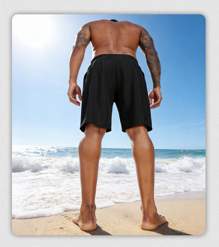 2025 여름 남성용 가짜 투피스 비치 바지 속건성 통기성 얇은 캐주얼 스포츠 야외 트렌디 5부 바지