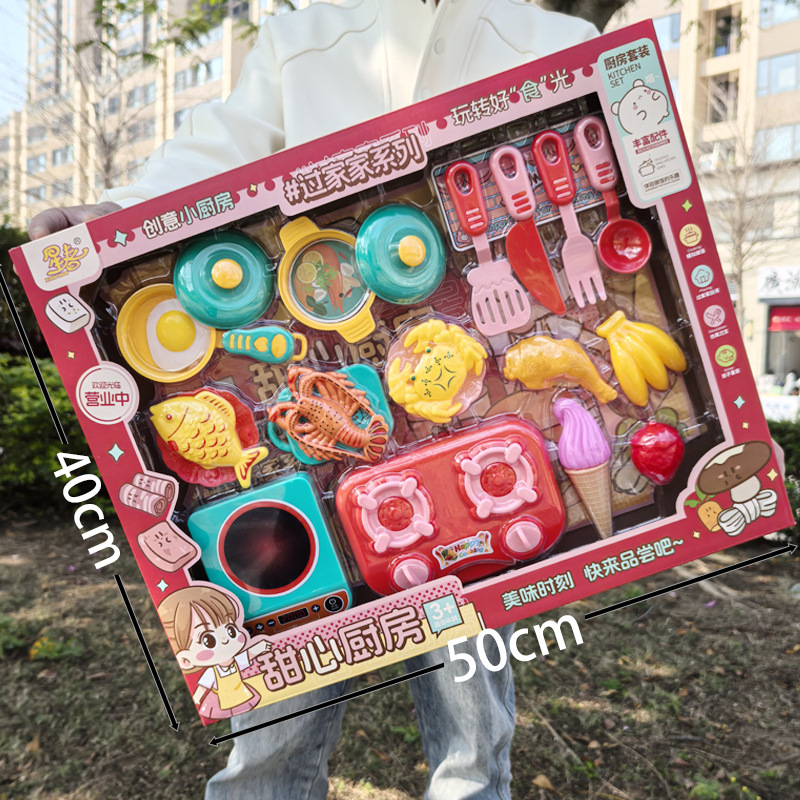 대형 선물 상자 소녀 장난감 놀이 집 시뮬레이션 주방 식기 조리 및 요리 장난감 재미있는 장난감 기관 선물스토어 가기