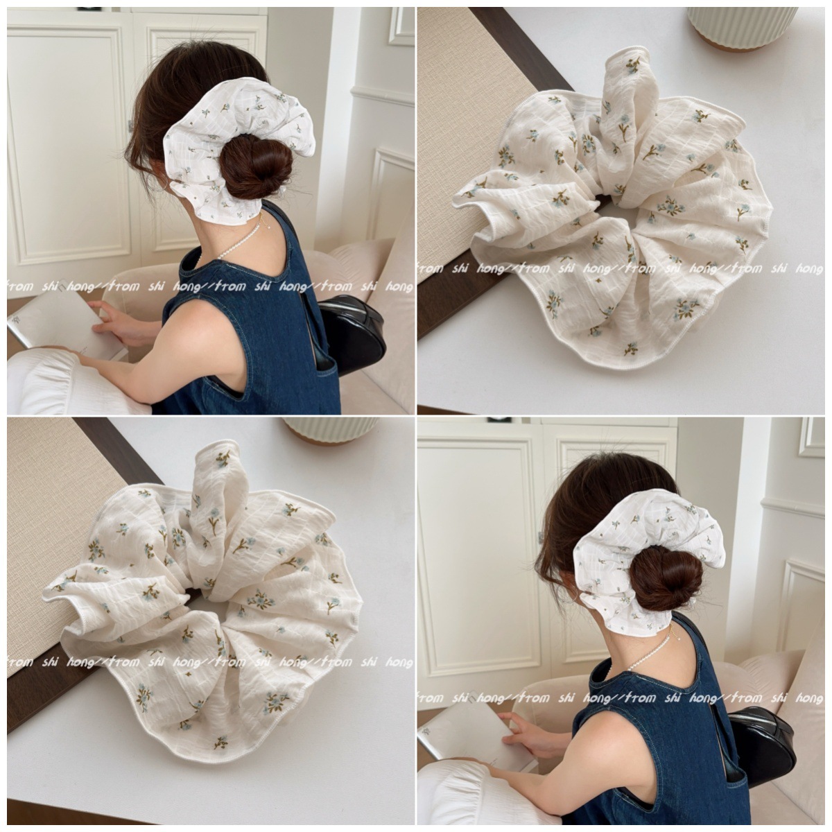 한국 스타일 젠틀 모리 스타일 꽃 다채로운 헤어 링 여성의 봄과 여름 새로운 하이 엔드 헤드폰 올매치 헤어 로프 헤어 로프 헤어 액세서리