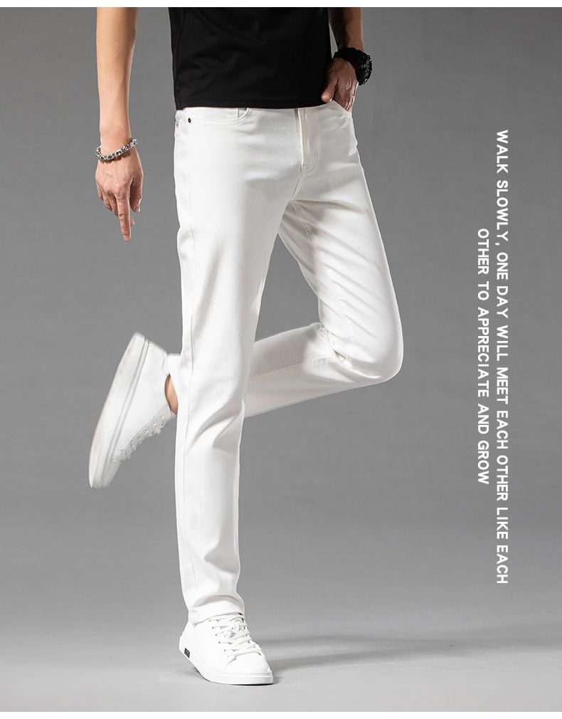 봄 가을 신상 블랙 고급 순면 남성 스트레이트 캐주얼 팬츠 패셔너블하고 다재다능한 화이트 캐주얼 팬츠 트렌디한 남성용
