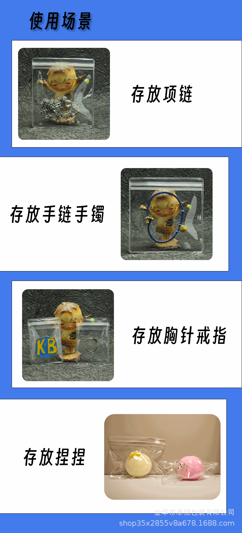 PVC 자체 밀봉 가방 플라스틱 포장 지퍼 포켓 보석 보석 보관 투명 보석 가방 핀치스토어 가기