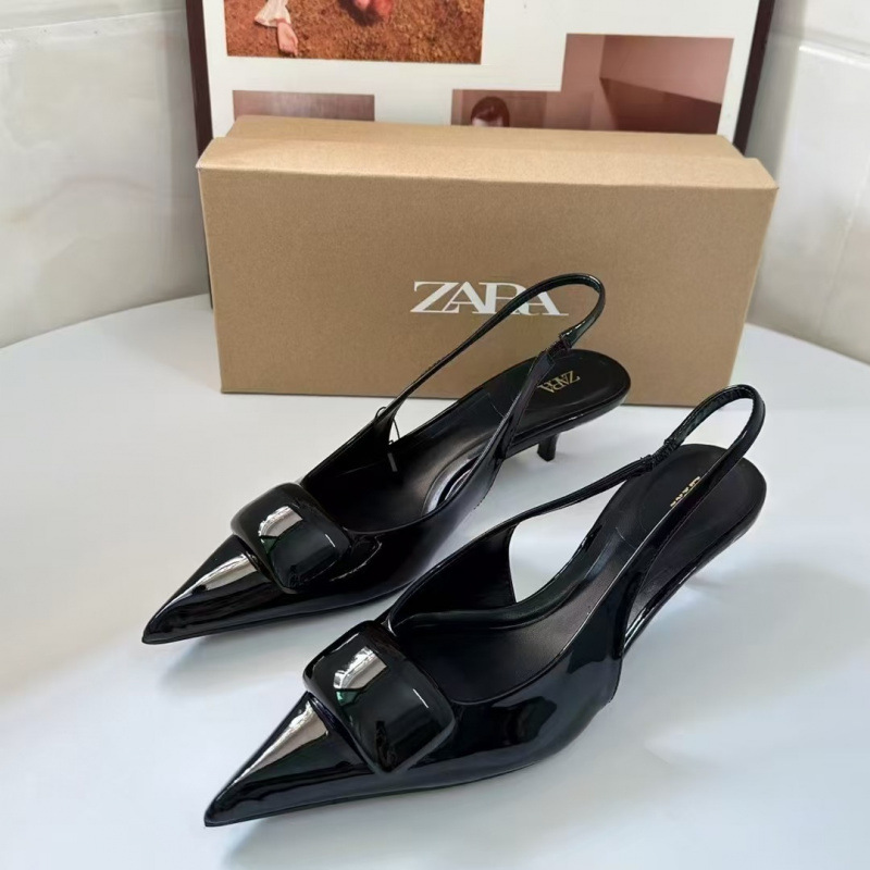 ZA 신상 2025 여름 스페인 연예인 여성 구두 뾰족한 앞코 버클 원 스트랩 하이힐 여성용 스틸레토 샌들스토어 가기