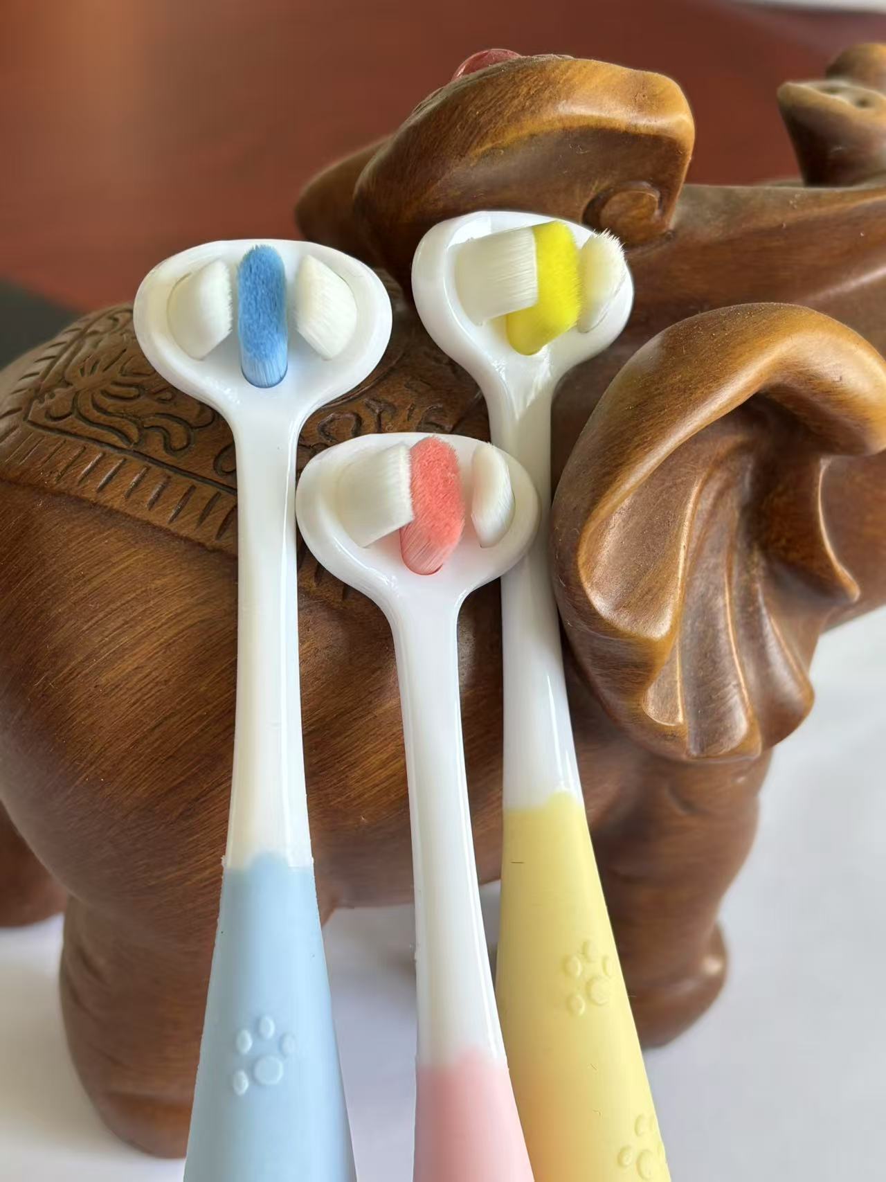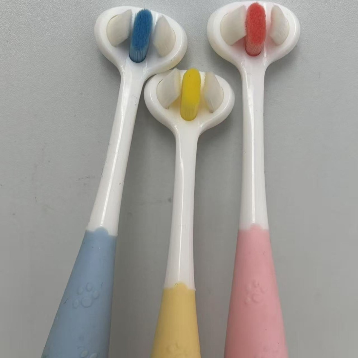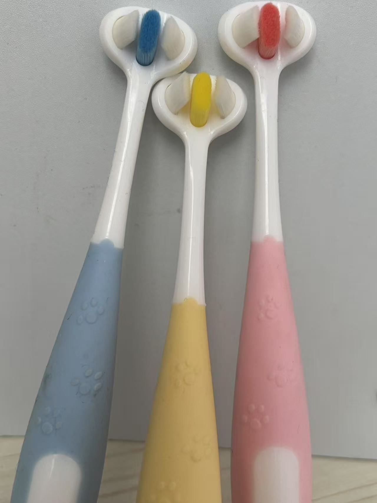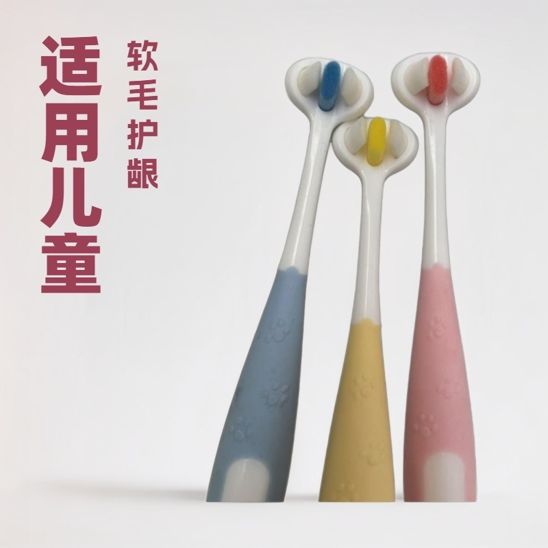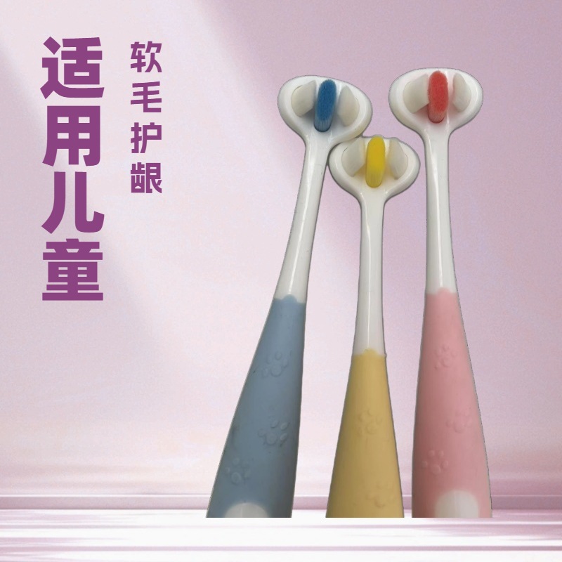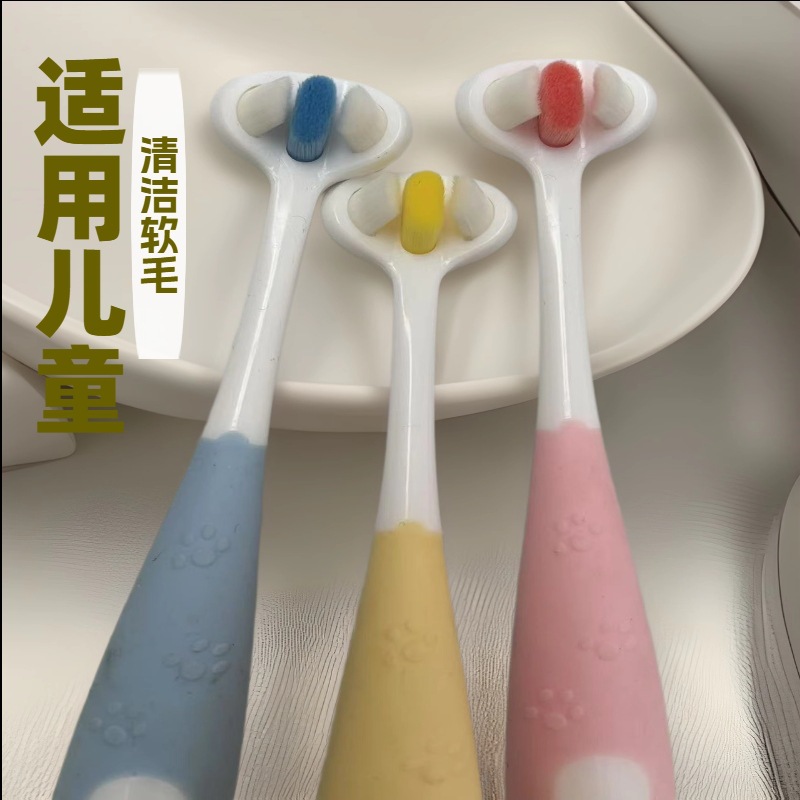 어린이용 3면 부드러운 칫솔 3~12세 어린이용 칫솔 과일색 3헤드 칫솔 아기용 부드러운 칫솔