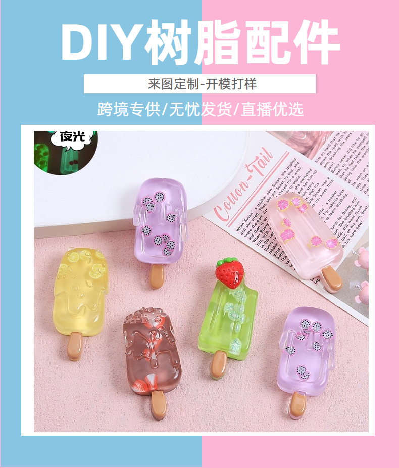 새로운 빛나는 과일 아이스 캔디 음식 놀이 만화 diy 크림 수지 액세서리 액세서리 액세서리 도매