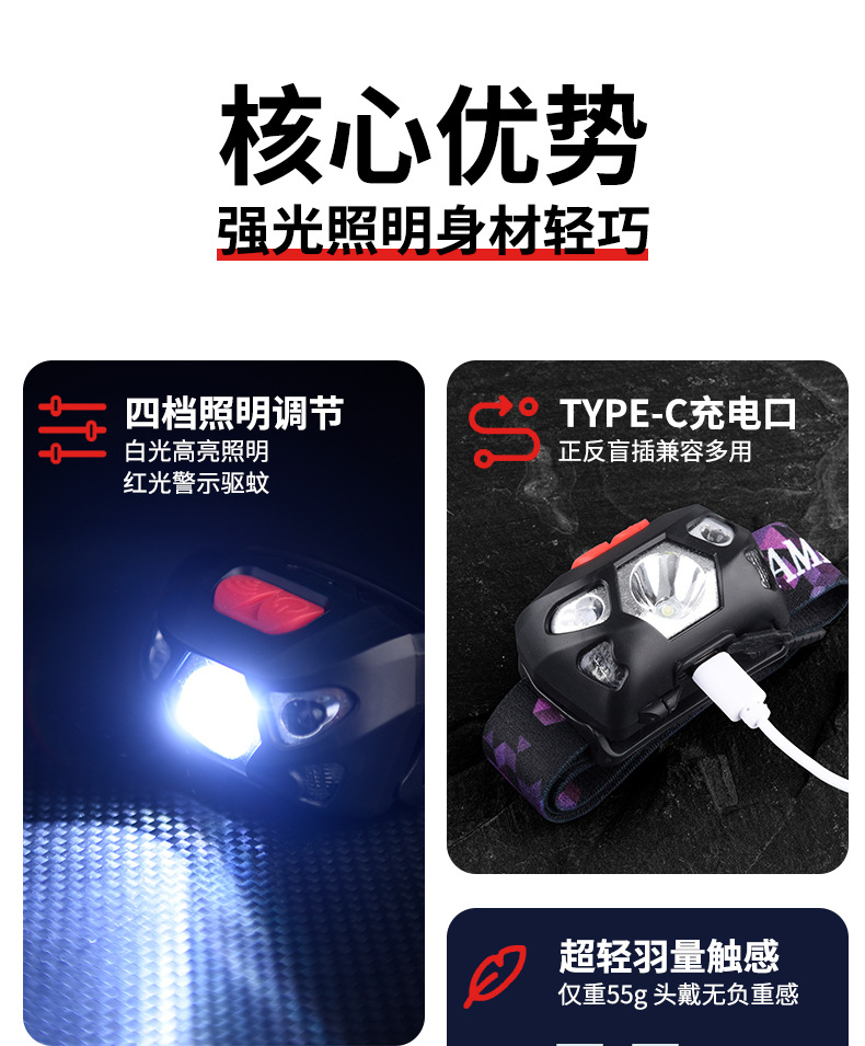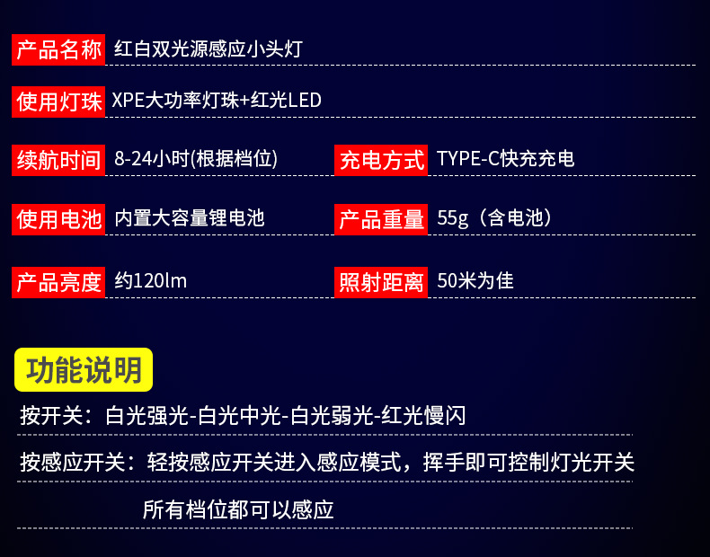 LED 헤드램프, 야외용 특수 강광, 초장시간 배터리, 초고휘도 듀얼 광원, 충전식 센서 낚시용 헤드램프스토어 가기
