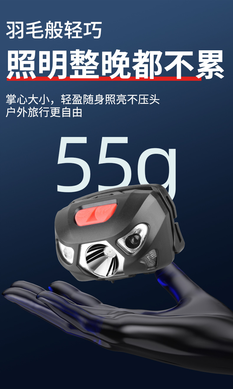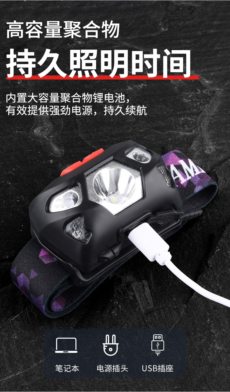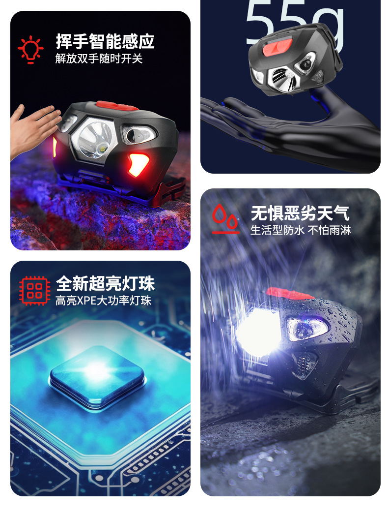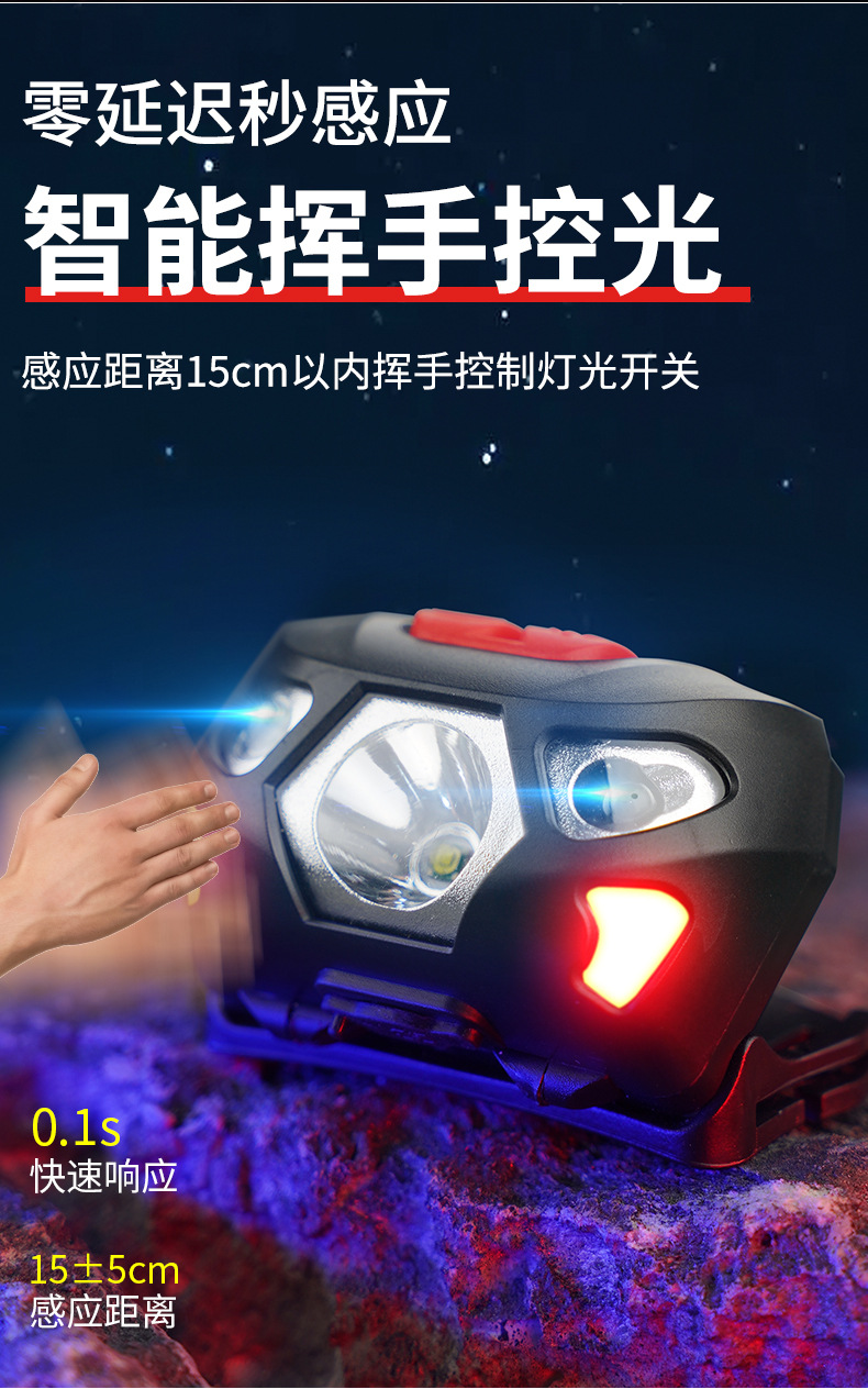 LED 헤드램프, 야외용 특수 강광, 초장시간 배터리, 초고휘도 듀얼 광원, 충전식 센서 낚시용 헤드램프