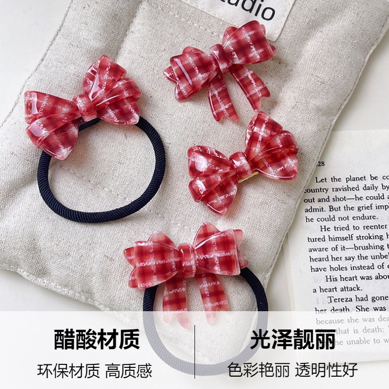새로운 빨간 격자 무늬 입체 활 머리핀 연령 감소 빨간 아세테이트 머리띠 달콤한 꿈 소녀 앞머리 머리핀 헤어 액세서리스토어 가기