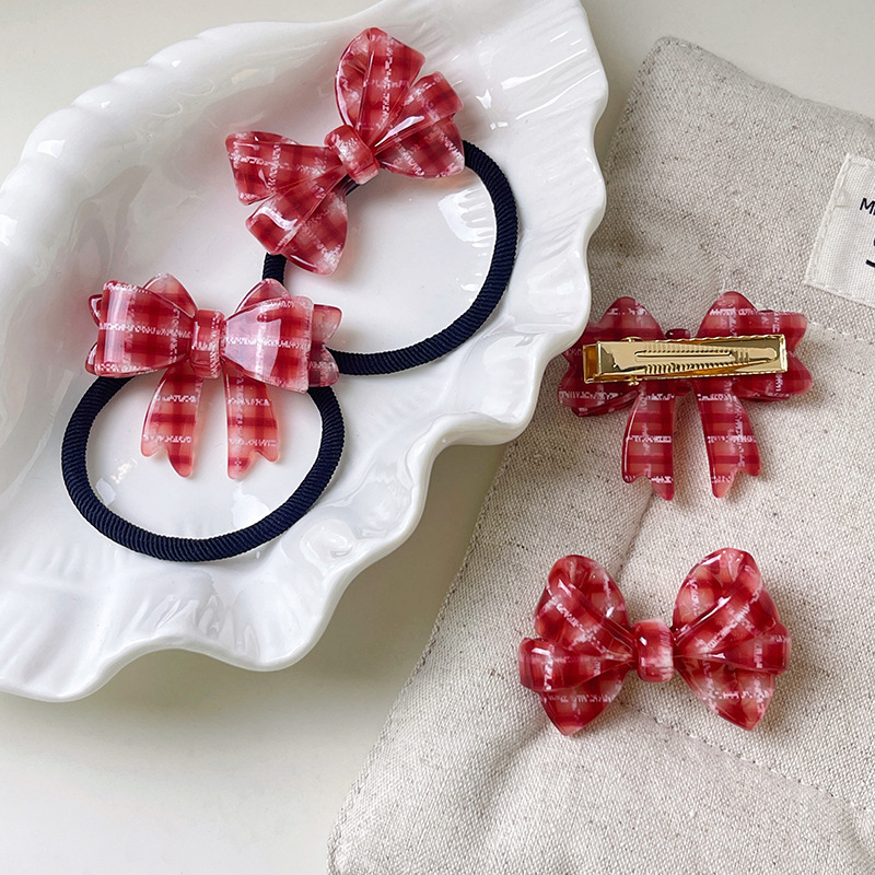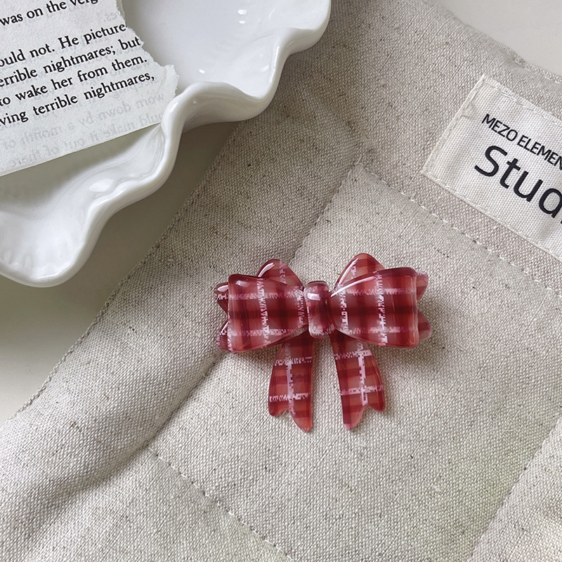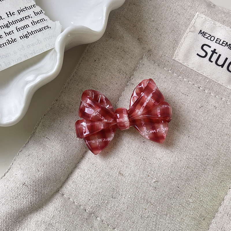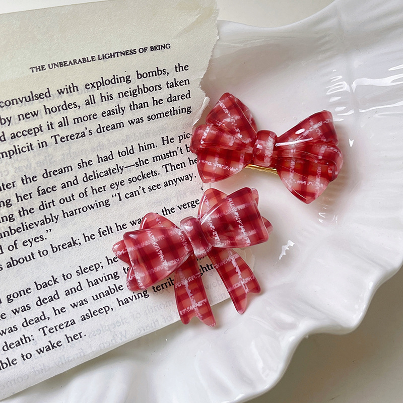 새로운 빨간 격자 무늬 입체 활 머리핀 연령 감소 빨간 아세테이트 머리띠 달콤한 꿈 소녀 앞머리 머리핀 헤어 액세서리