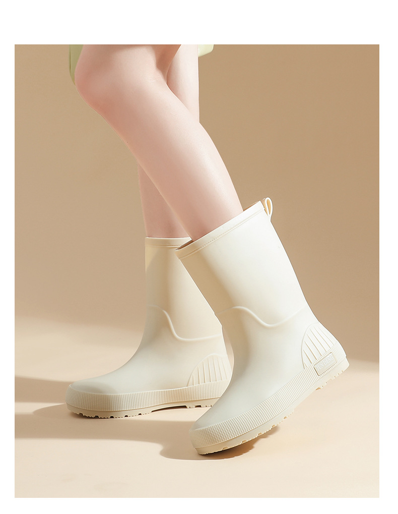 2025 국경 패션 미드 배럴 레인 부츠 새로운 여성 아우터웨어 방수 미끄럼 방지 야외 pvc 기모 레인 부츠 여성