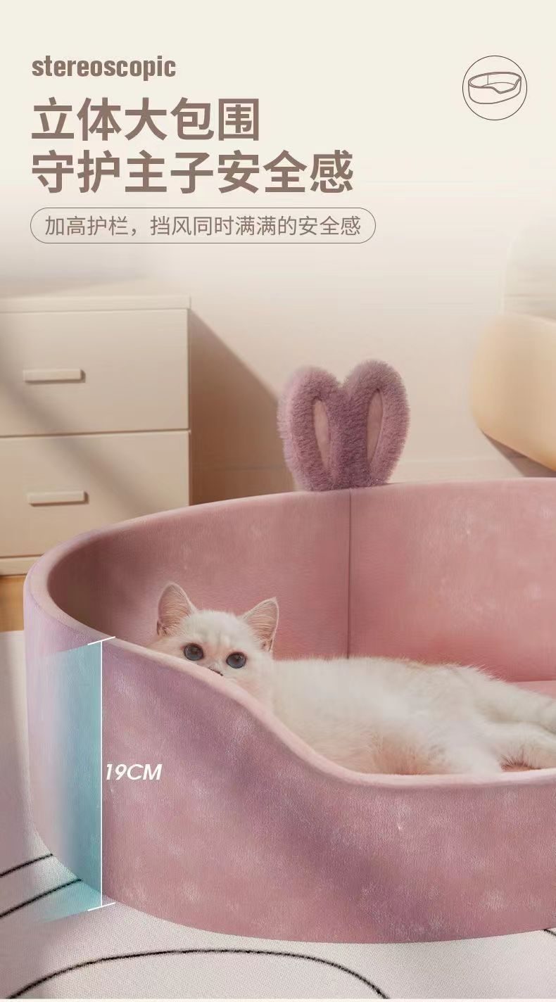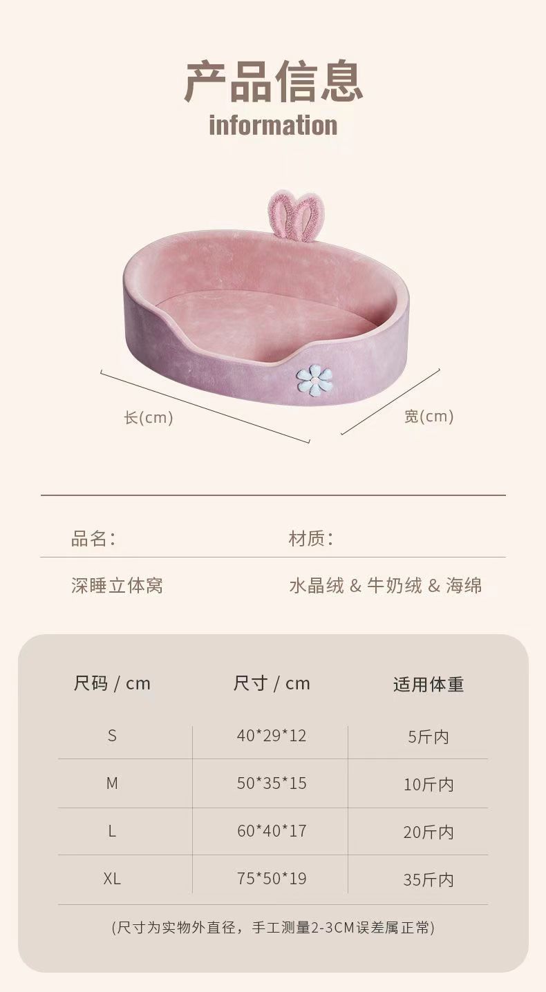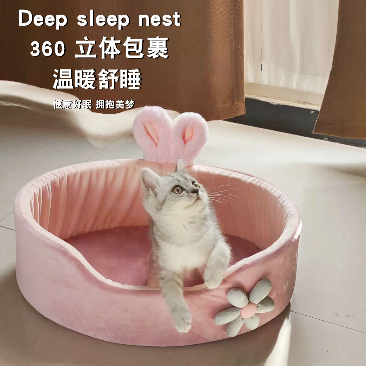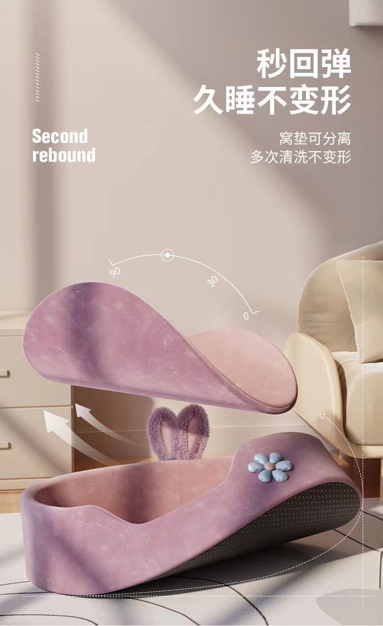 사계절 모두 사용할 수 있는 새로운 핑크색 귀여운 토끼 귀 고양이 개집, 탈부착 및 세척 가능한 애완동물 침대, 고양이 개집 애완동물 매트스토어 가기