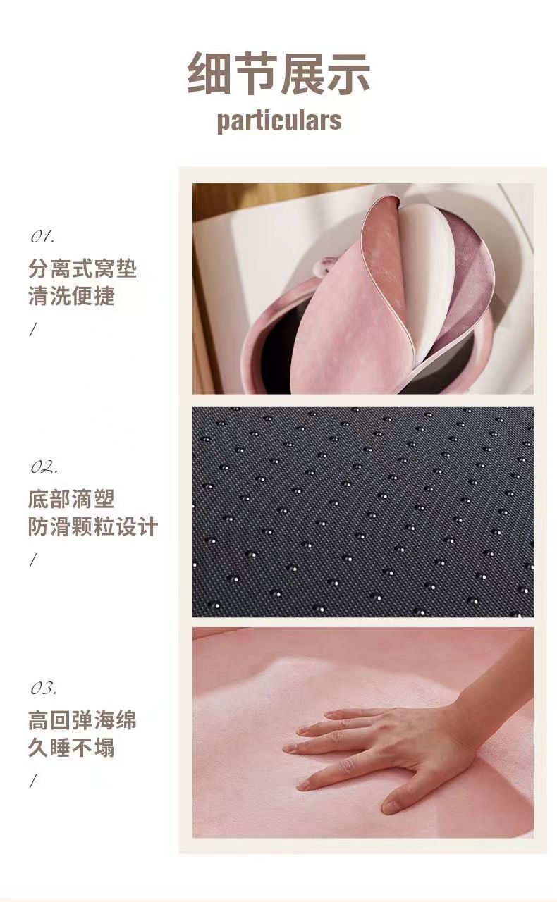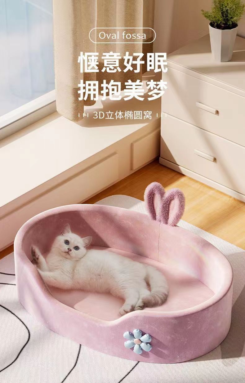 사계절 모두 사용할 수 있는 새로운 핑크색 귀여운 토끼 귀 고양이 개집, 탈부착 및 세척 가능한 애완동물 침대, 고양이 개집 애완동물 매트