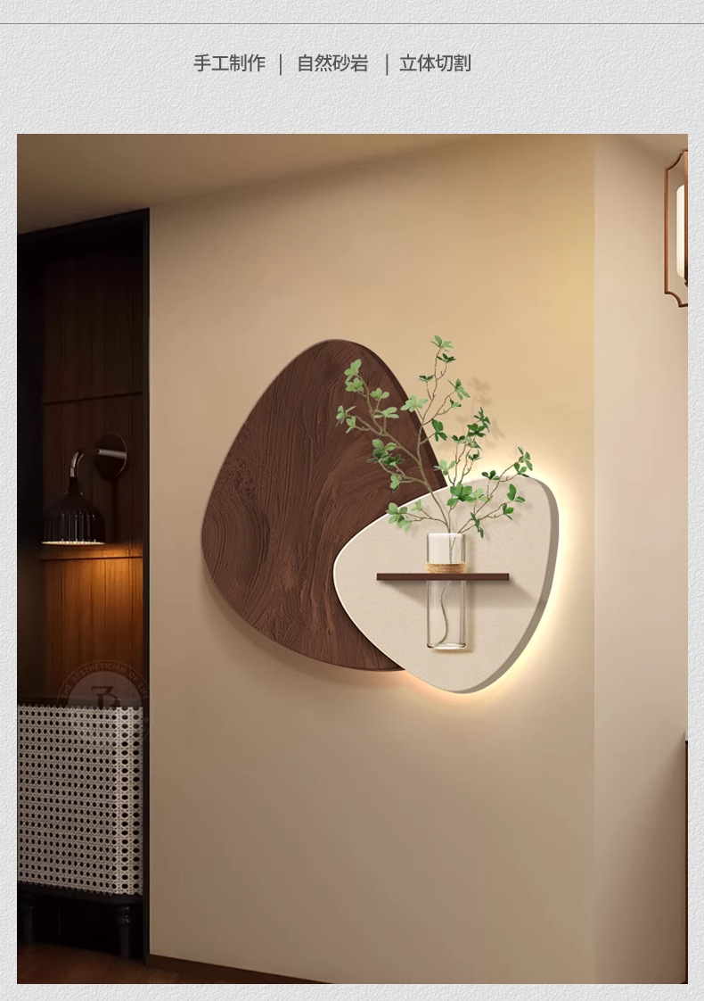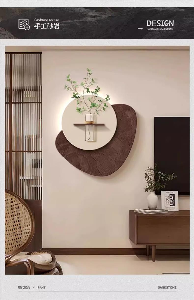 하이 엔드 입구 장식 그림 수경 녹색 식물 TV 소파 배경 벽 교수형 그림 거실 입체 사암 그림
