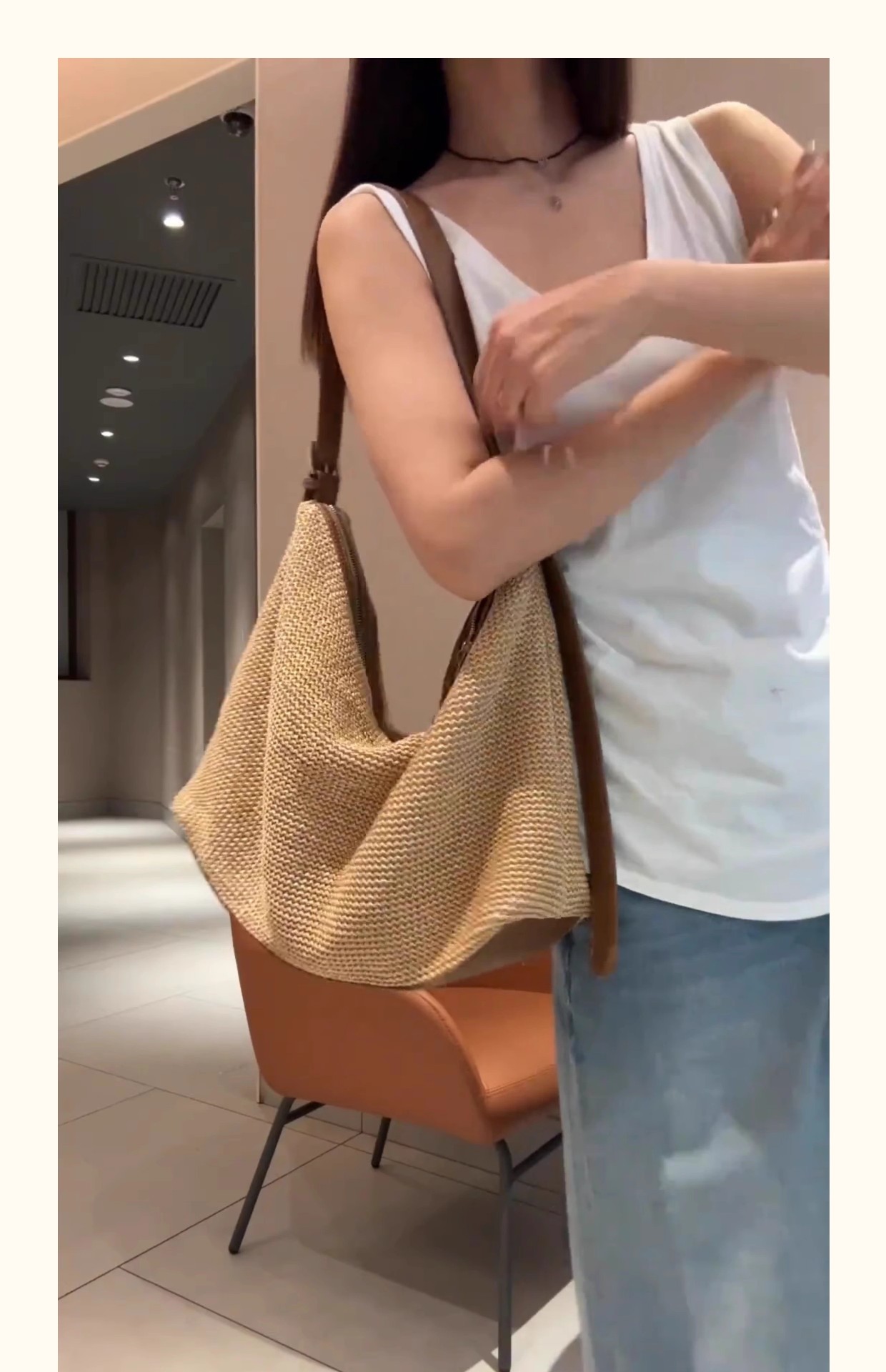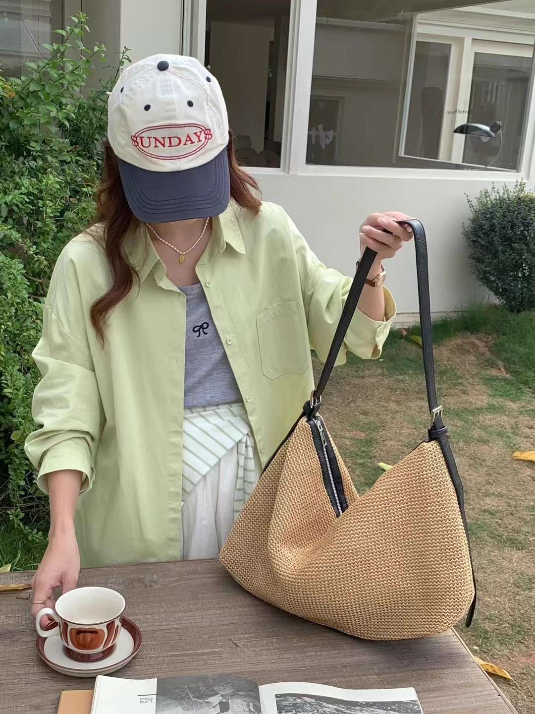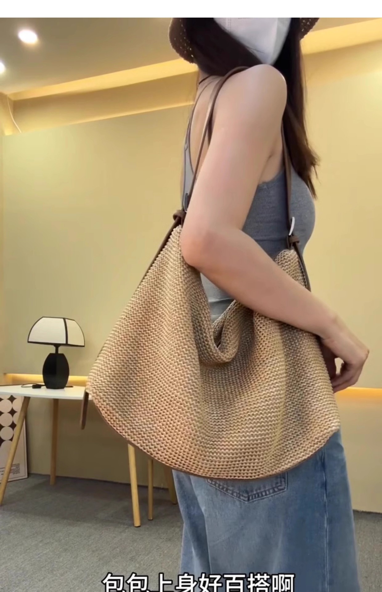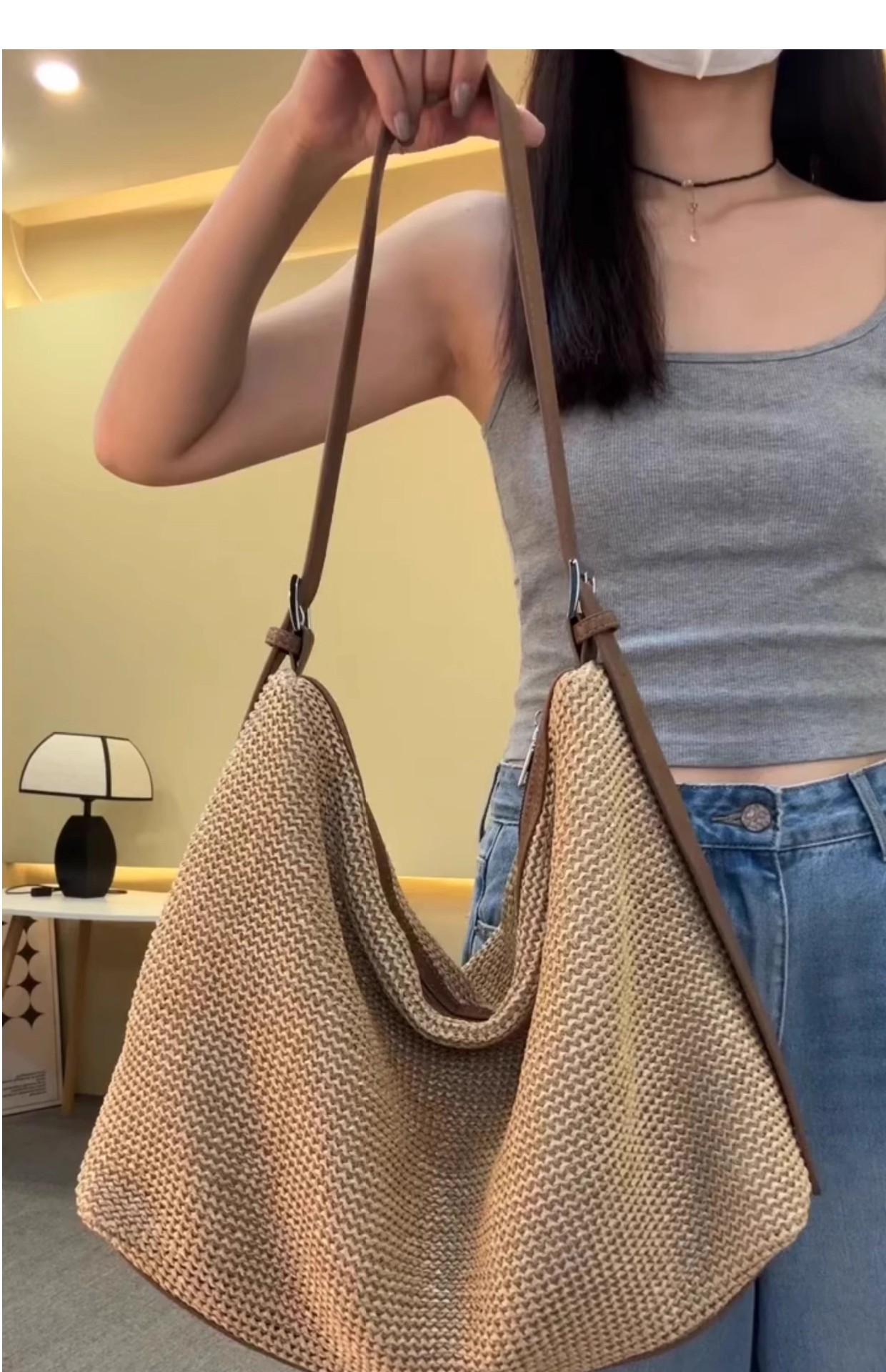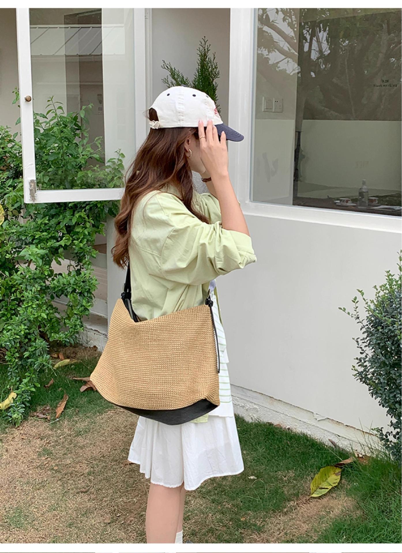 여름 패션 캐주얼 휴대용 대용량 가방 여성의 새로운 2024 간단한 밀짚 토트 가방 언더암 가방스토어 가기