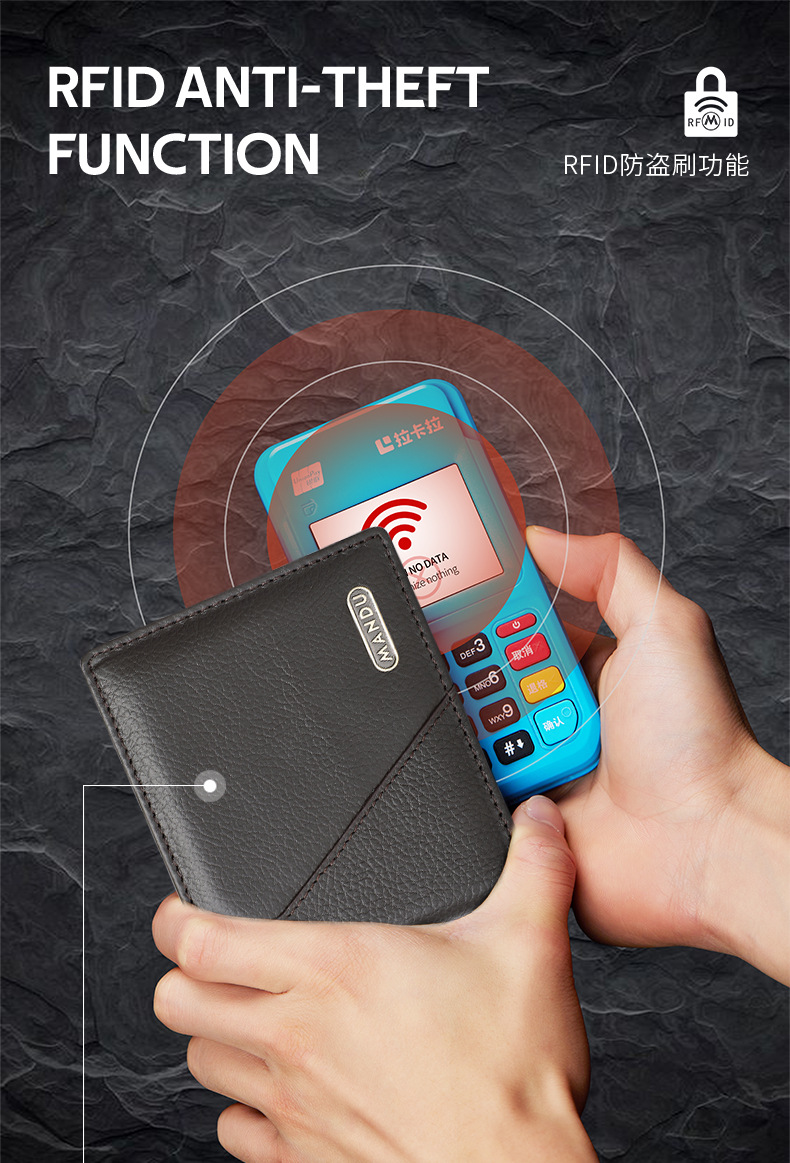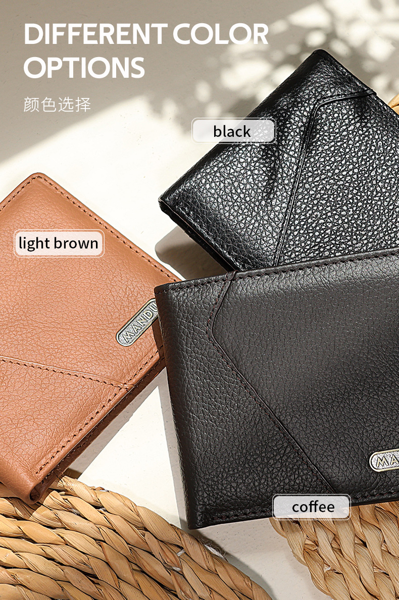 2025년 신형 남성용 도난 방지 소가죽 반지갑 내구성 남녀공용 고급 지갑 동전 지갑