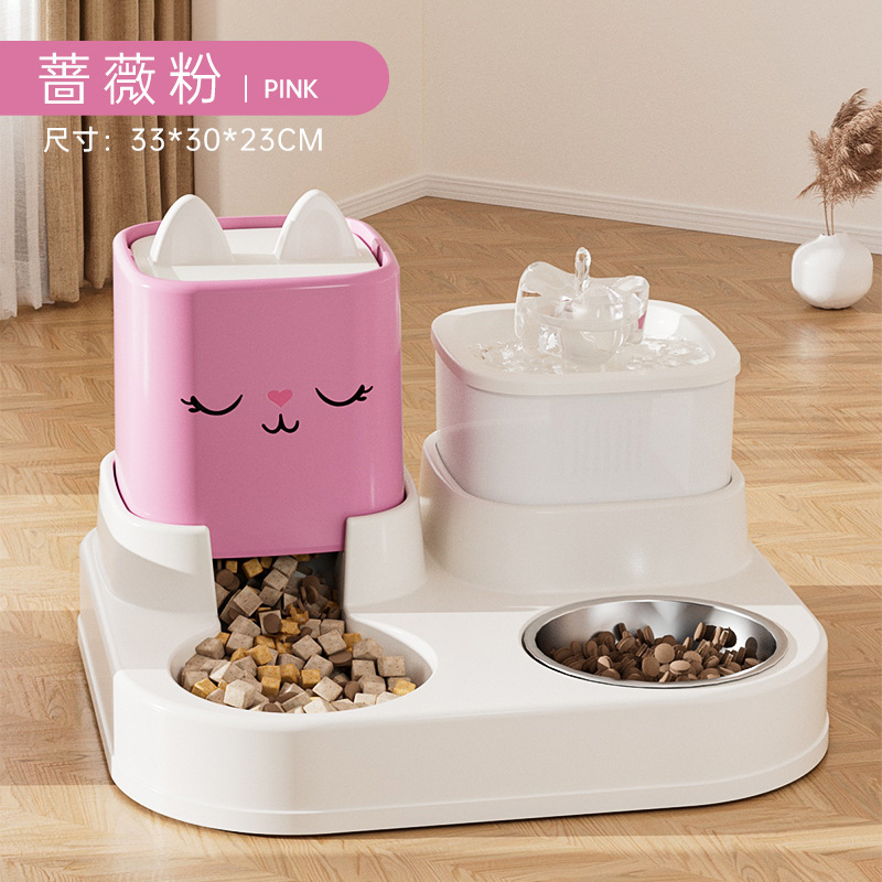 새로운 고양이 자동 식수대, 습식 및 건식 분리 이중 그릇, 흔들림 방지 워터 디스펜서 + 고양이 먹이 공급 장치