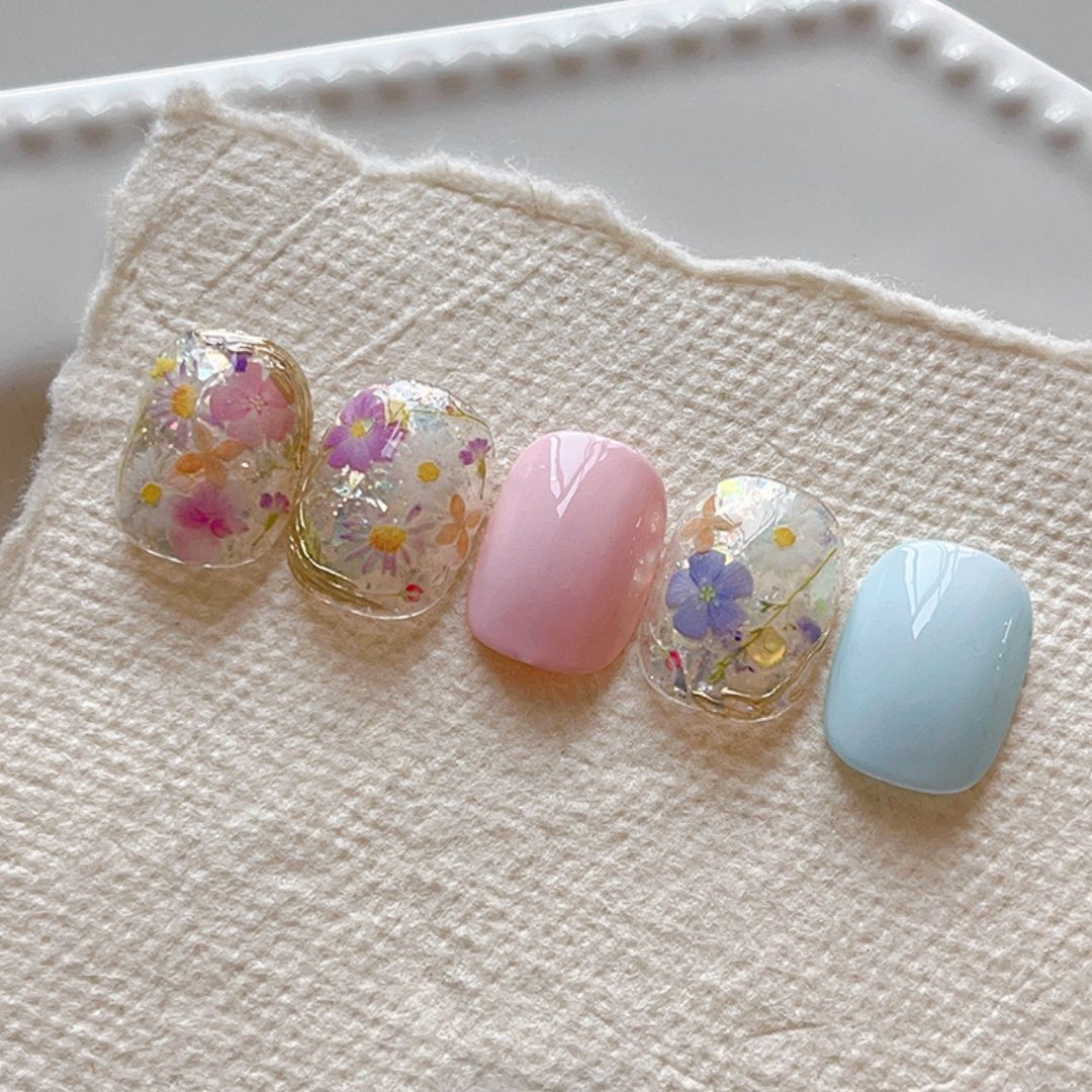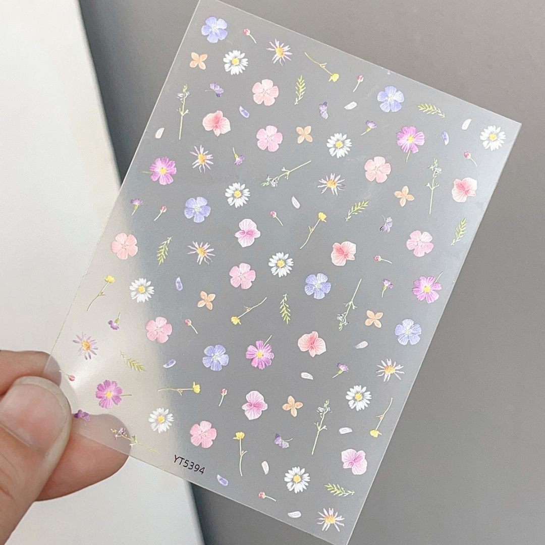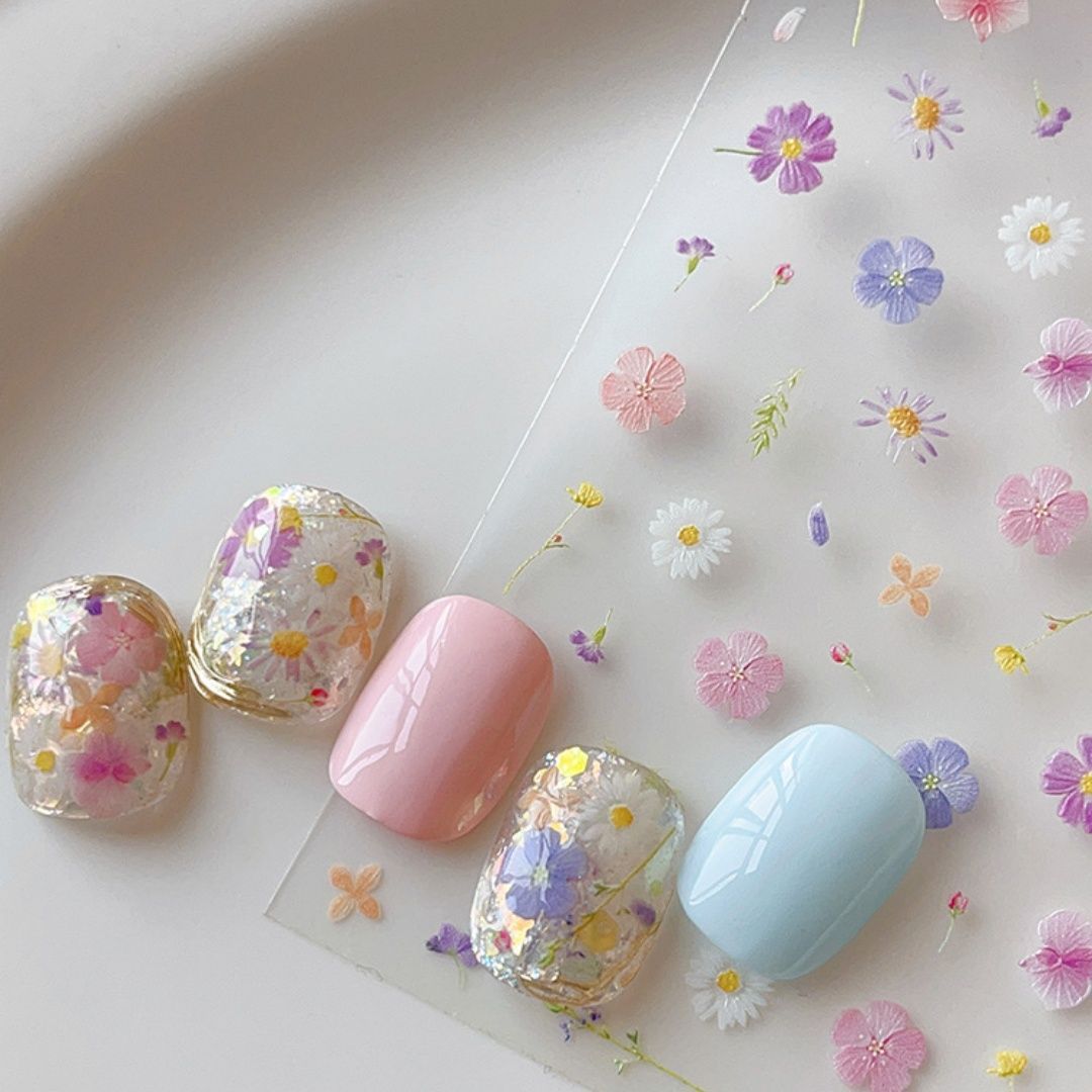 여름 새로운 시뮬레이션 말린 꽃 네일 아트 스티커 신선한 컬러 벚꽃 작은 꽃 야생화 마이크로 릴리프 네일 데칼