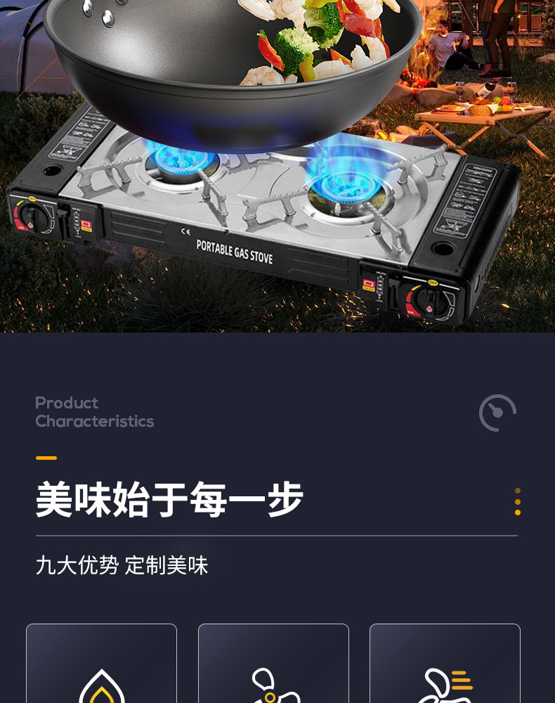 새로운 피크닉 캠핑 방풍 더블 스토브 야외 스토브 휴대용 야외 카드 스토브 냄비 바베큐 더블 헤드 가스