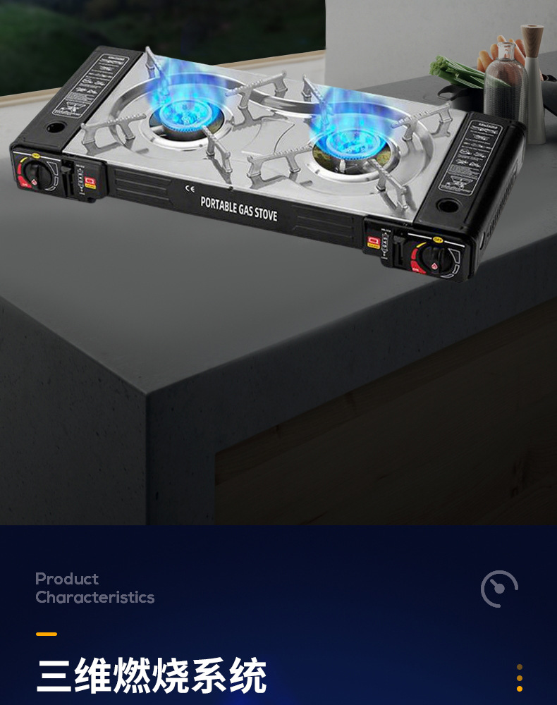 새로운 피크닉 캠핑 방풍 더블 스토브 야외 스토브 휴대용 야외 카드 스토브 냄비 바베큐 더블 헤드 가스스토어 가기