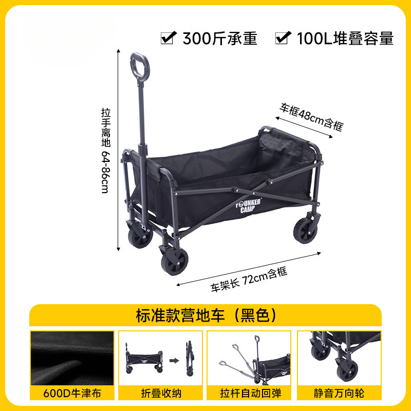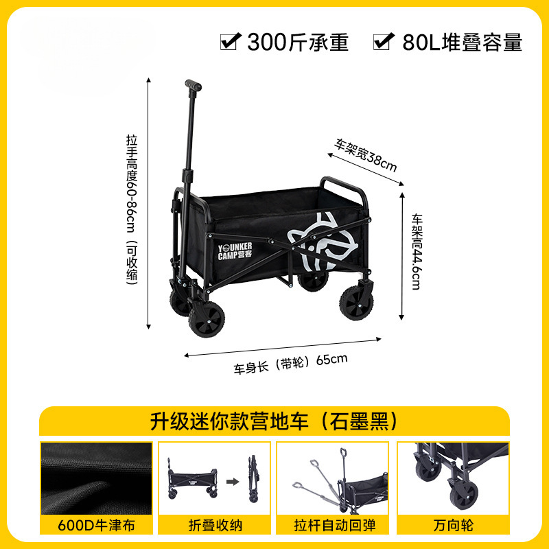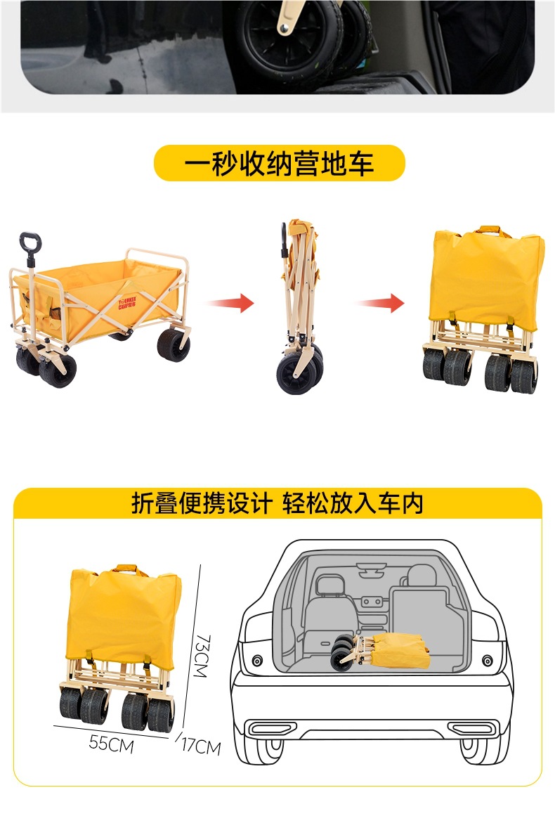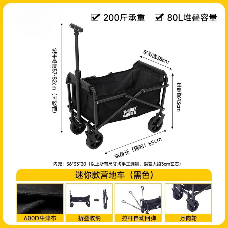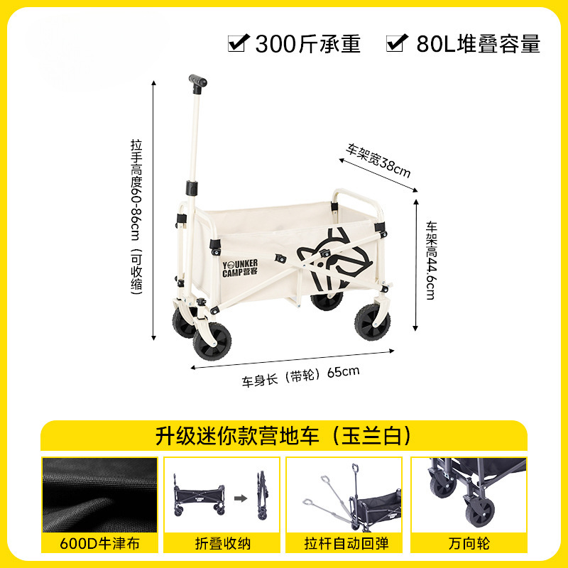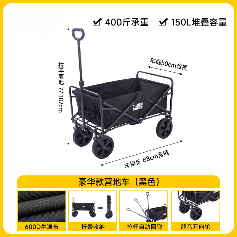 Yumi 캠핑카 야외 접이식 카트 캠핑카 피크닉 카트 트레일러 캠핑 핸드 트롤리 카트