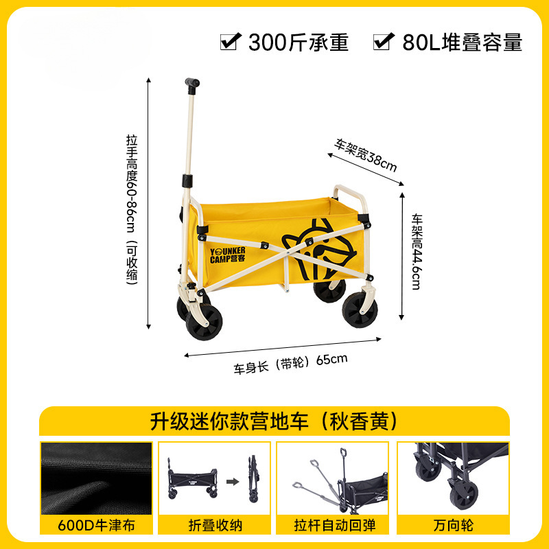 Yumi 캠핑카 야외 접이식 카트 캠핑카 피크닉 카트 트레일러 캠핑 핸드 트롤리 카트스토어 가기