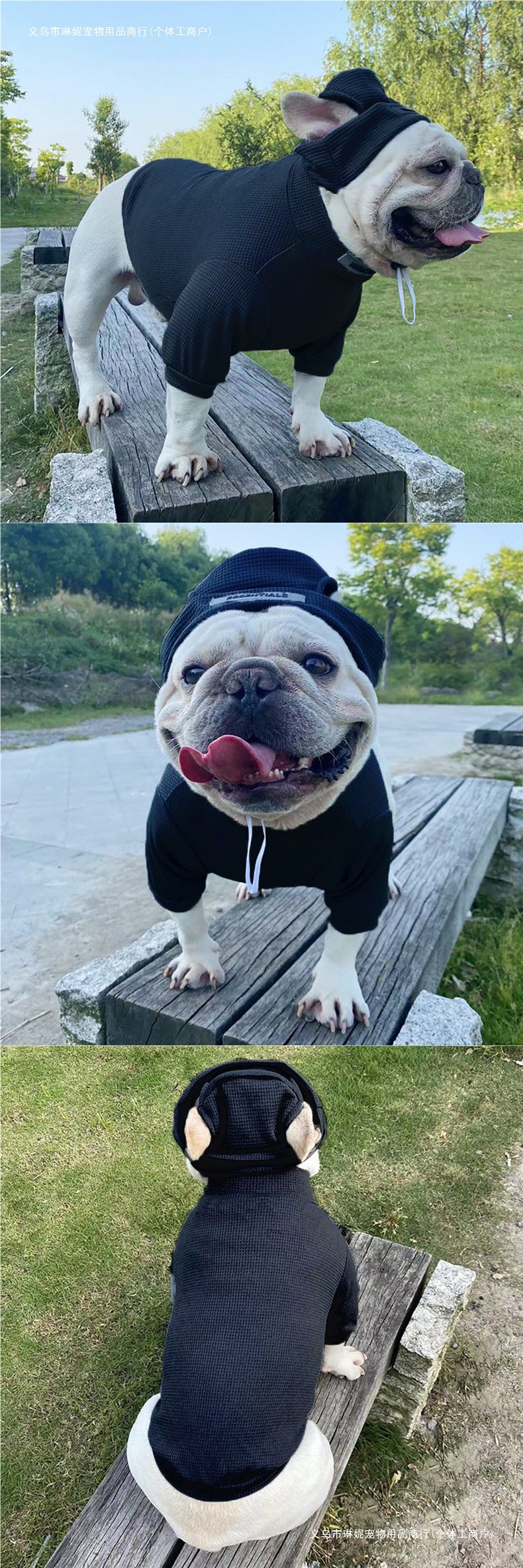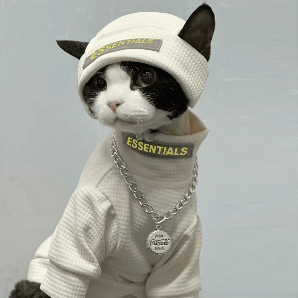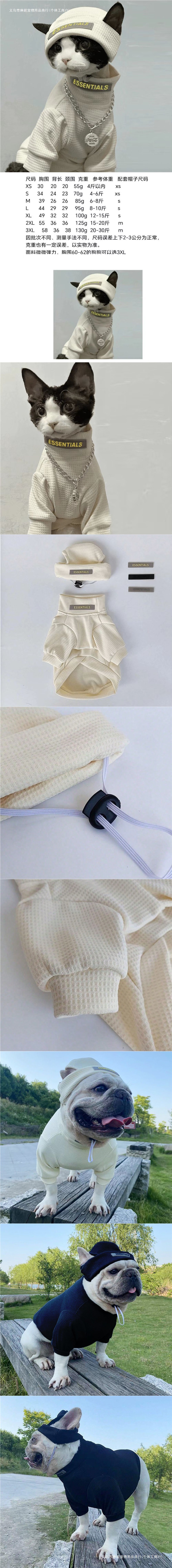 애완 동물 고양이와 개 옷 탑 + 모자 세트 세련된 와플 작은 개와 고양이 따뜻한 옷 베이지 블랙스토어 가기