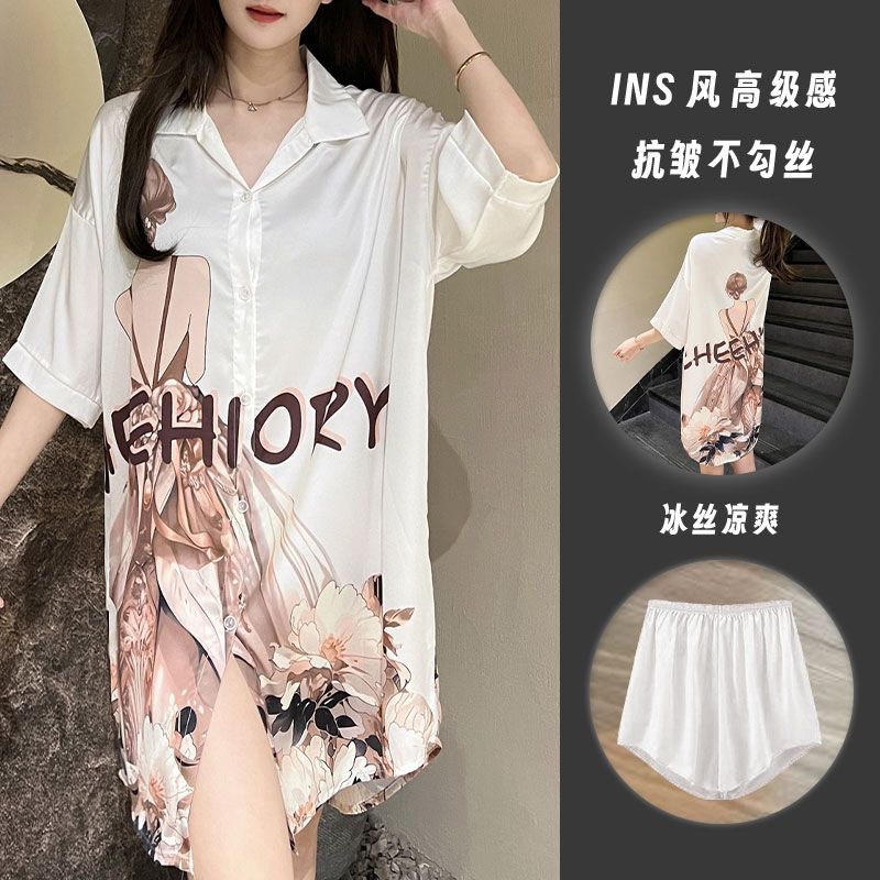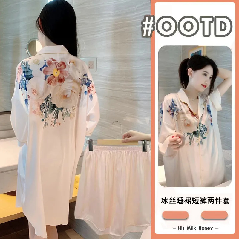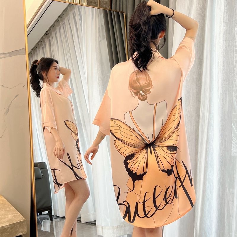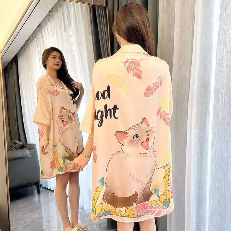여성을위한 한국 스타일의 새로운 얼음 실크 잠옷 여름 얇은 섹시한 카디건 잠옷 여성을위한 하이 엔드 라이트 럭셔리 느슨한 홈웨어스토어 가기