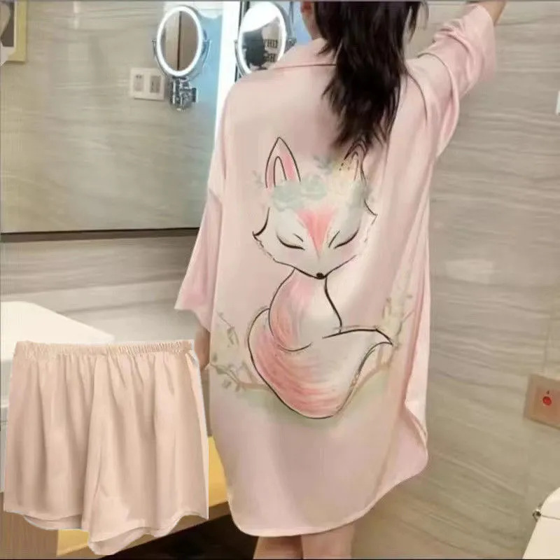 • 핑크 폭스/아이스 실크 잠옷 + 반바지