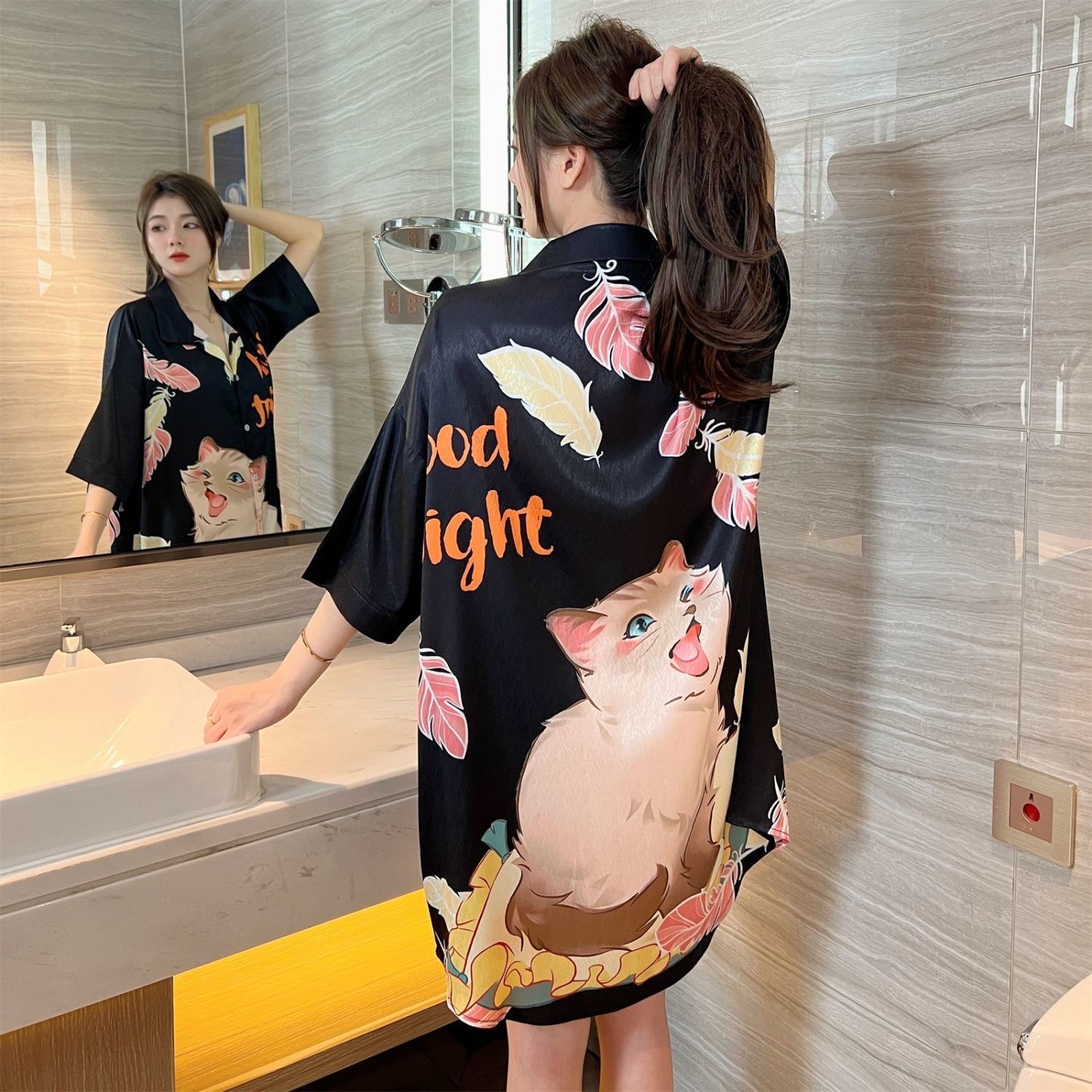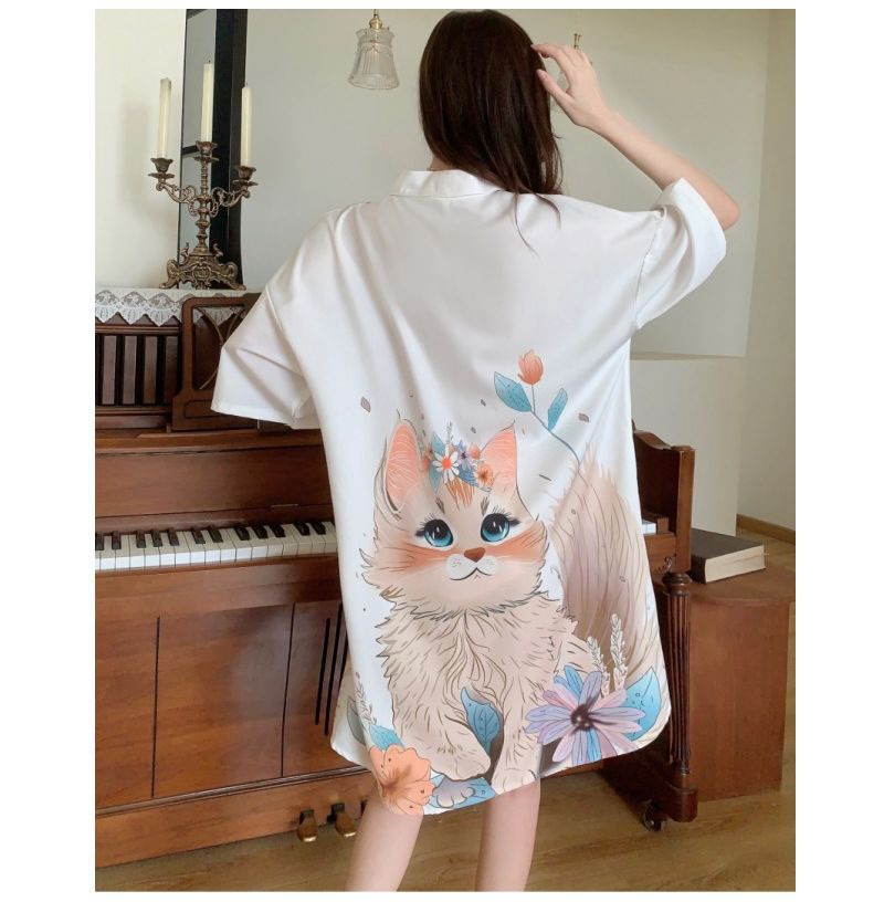 • 뺨 지원 고양이/얼음 실크 잠옷