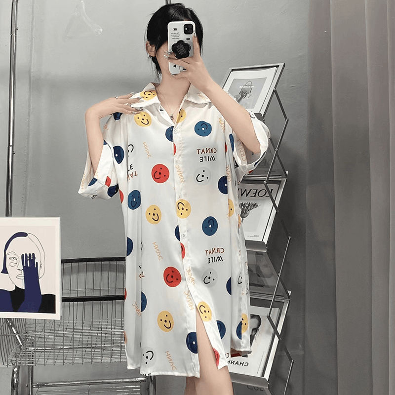 • 멀티 컬러 웃는 얼굴/얼음 실크 잠옷
