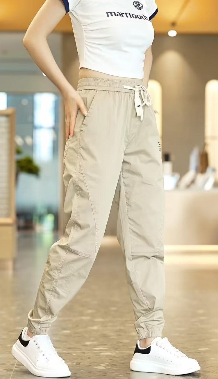 2026 아이스 실크 여름 작업복용 뒷주머니가 있는 레깅스 스타일 속건 캐주얼 팬츠 남성용 루즈핏 대형 스포츠 바지스토어 가기