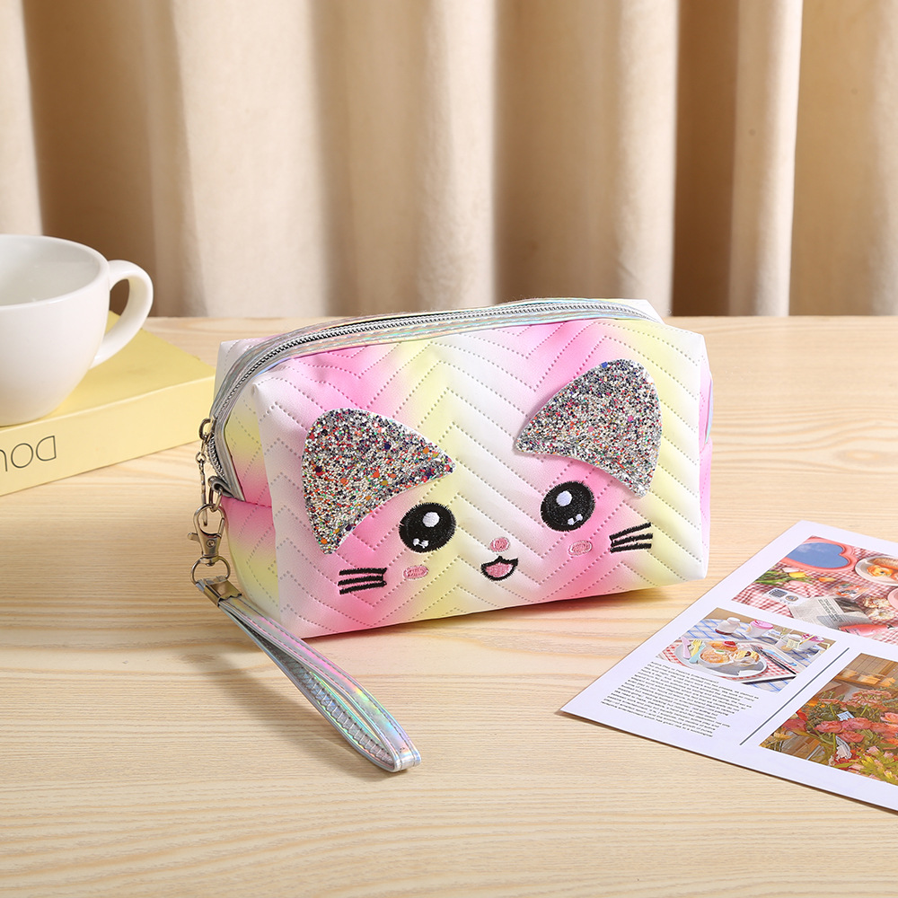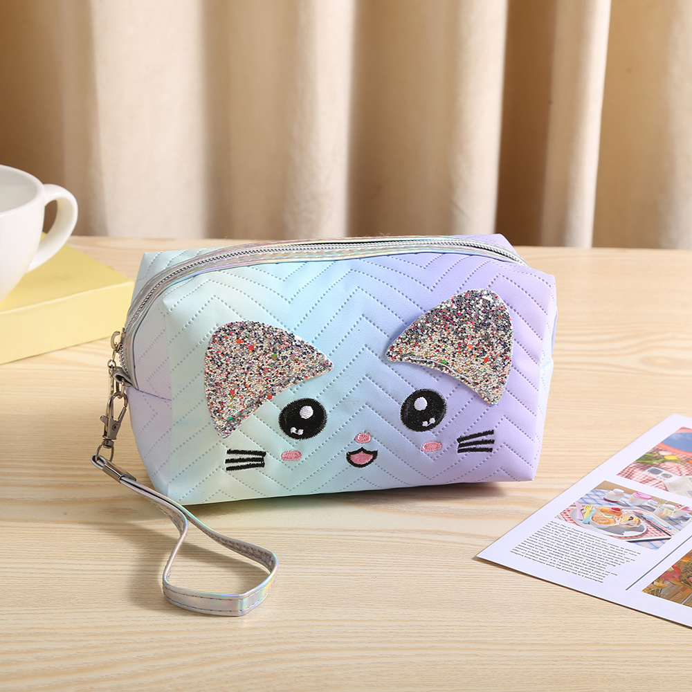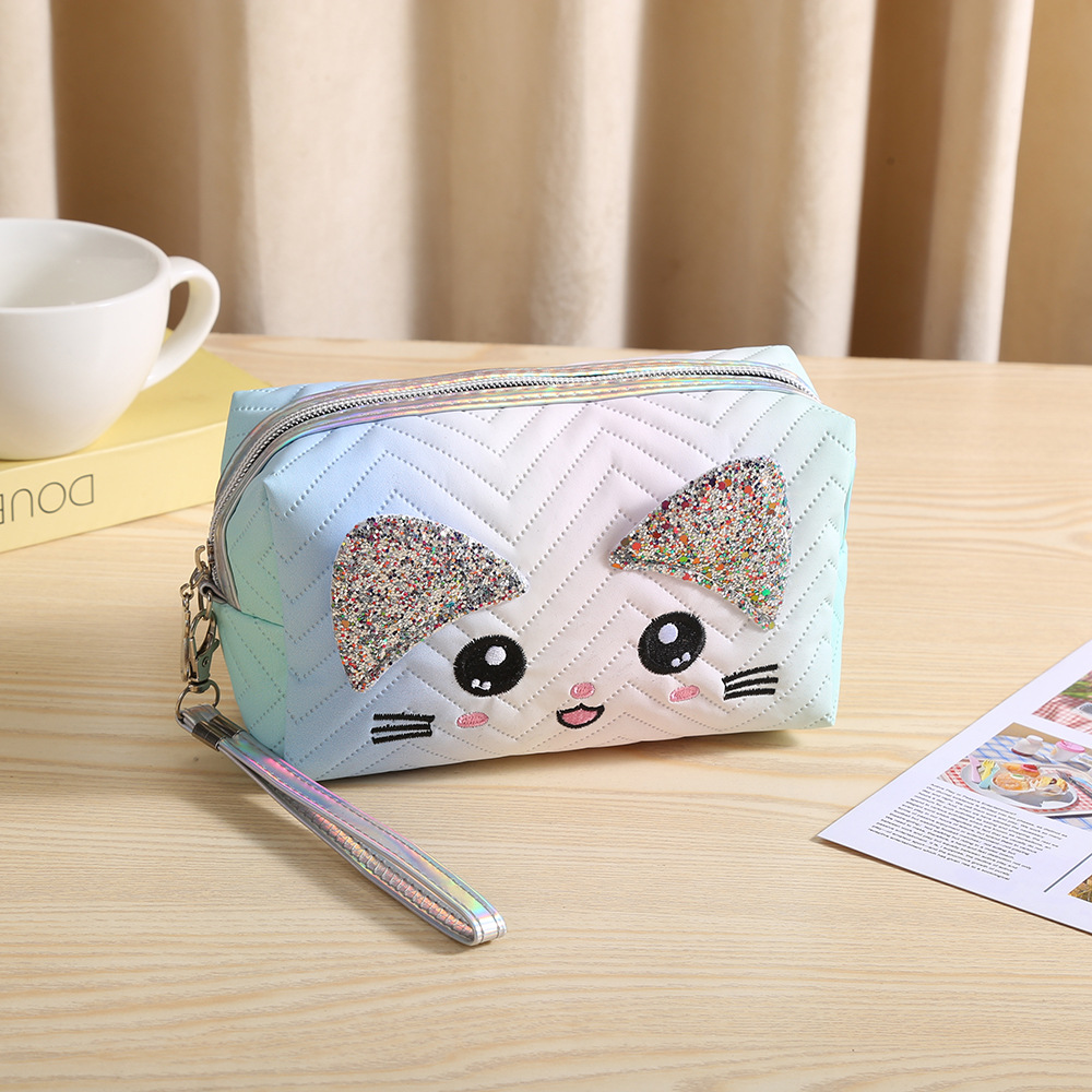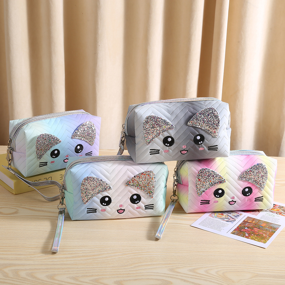 새로운 그라디언트 고양이 화장품 가방 대용량 휴대용 여행 세면 용품 가방 스킨 케어 메이크업 리무버 보관 핸드백