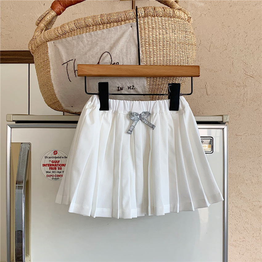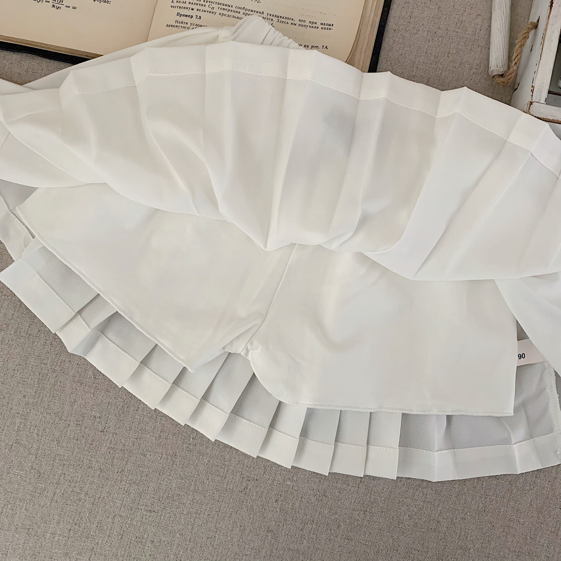 여아용 리본 주름 스커트(안쪽에 안전바지 포함) 여름 쉬폰 고품질 여아용 짧은 스커트 miu 스타일
