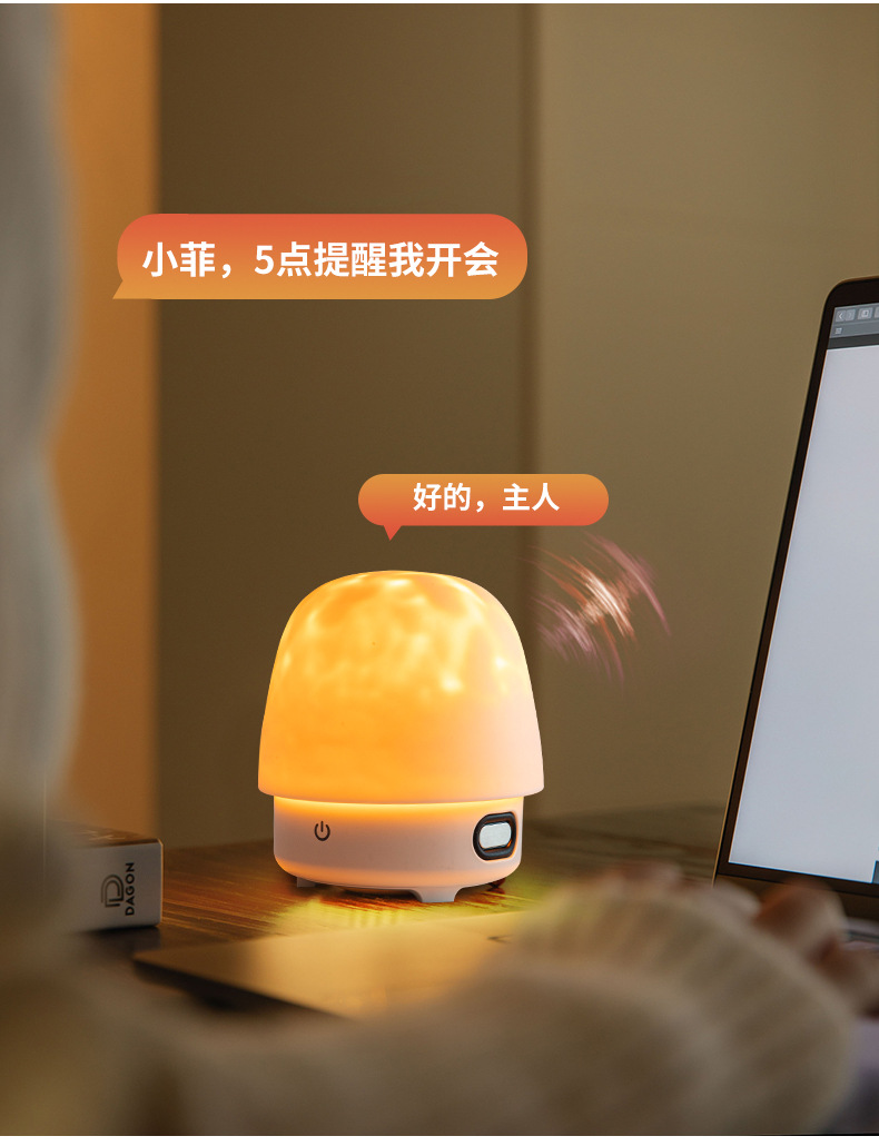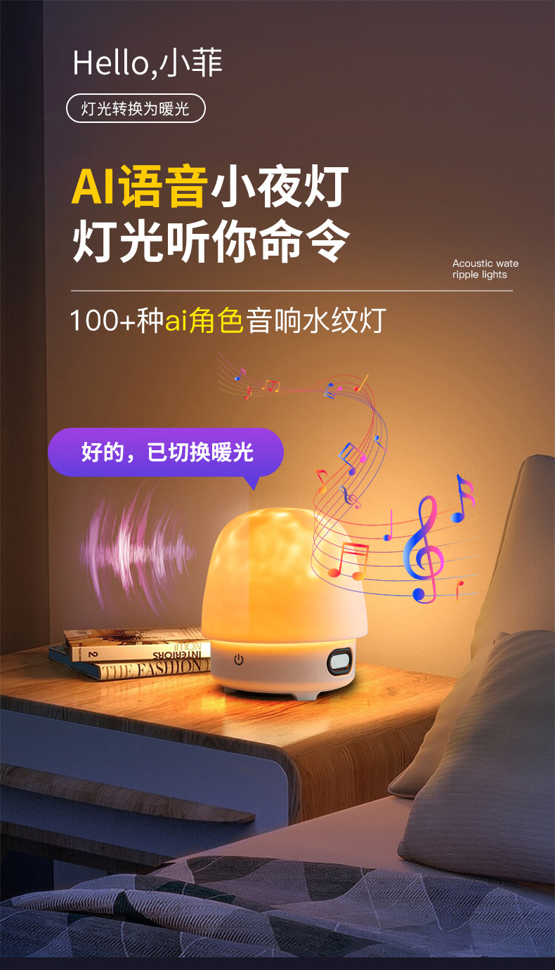 새로운 물 리플 야간 조명 ai 지능형 대형 모델 대화 블루투스 오디오 램프 낭만적 인 침실 머리맡 분위기 램프스토어 가기