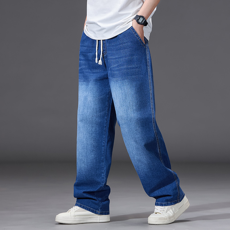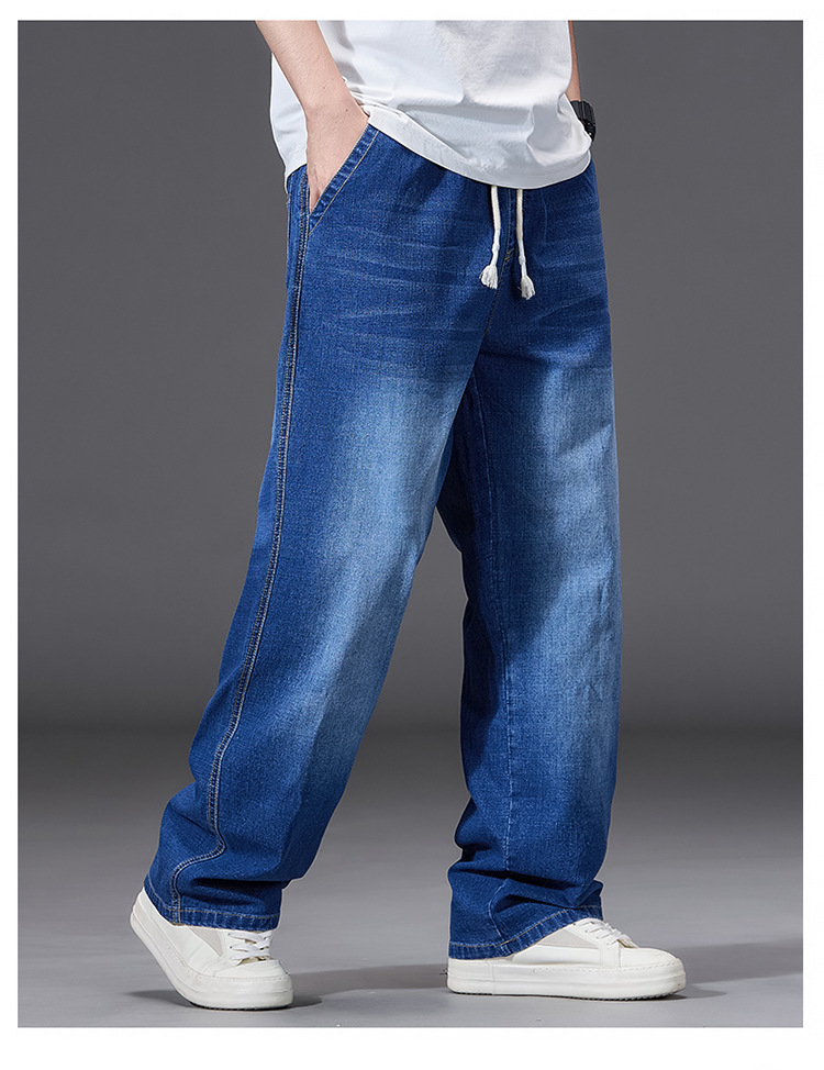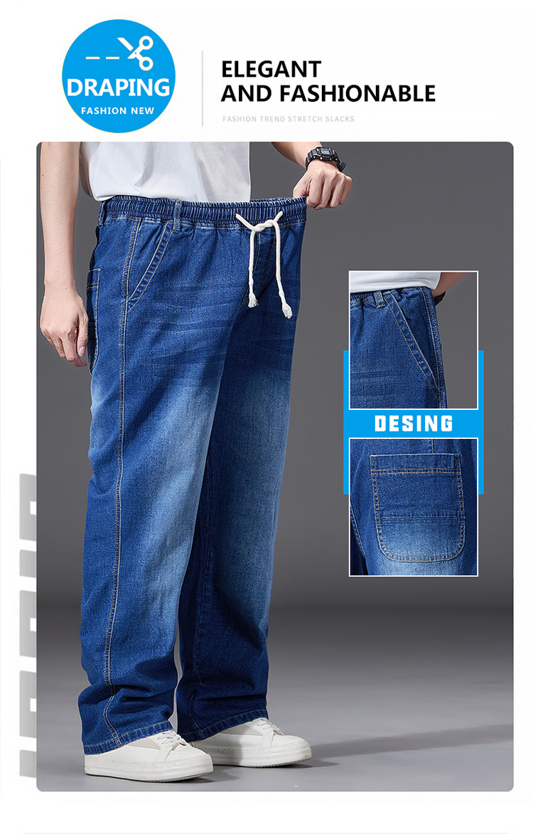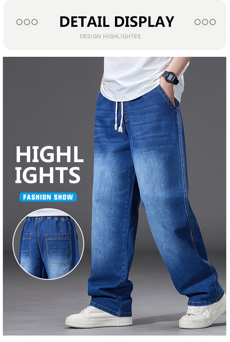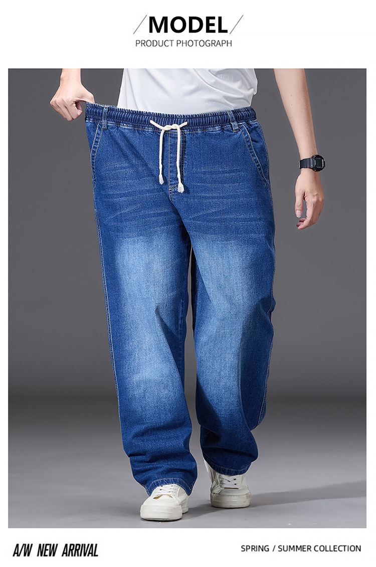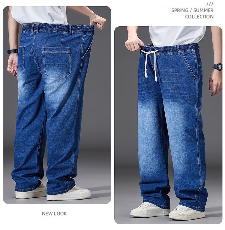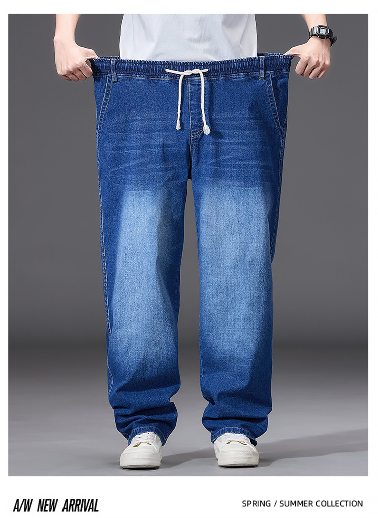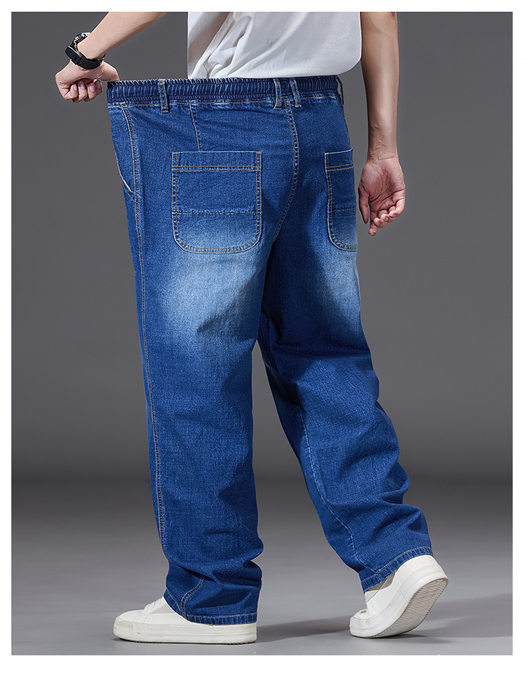 남성용 플러스 사이즈 청바지, 루즈한 스트레이트 레그 와이드 레그 플러스 사이즈 뚱뚱한 남성용 바지, 신축성 있는 하이 웨이스트 뚱뚱한 남성용 바지스토어 가기