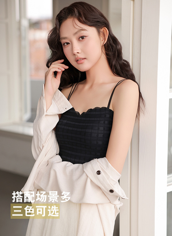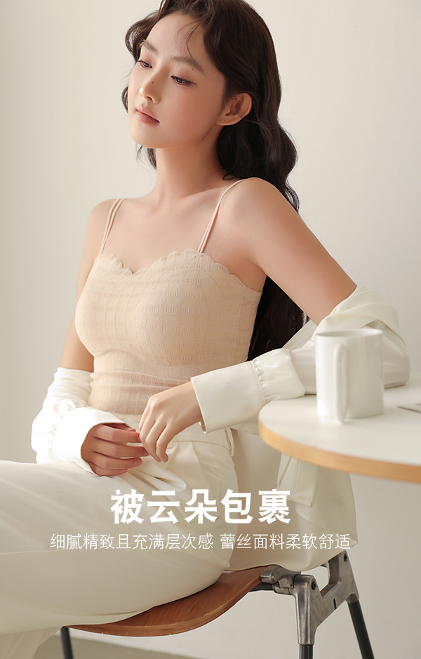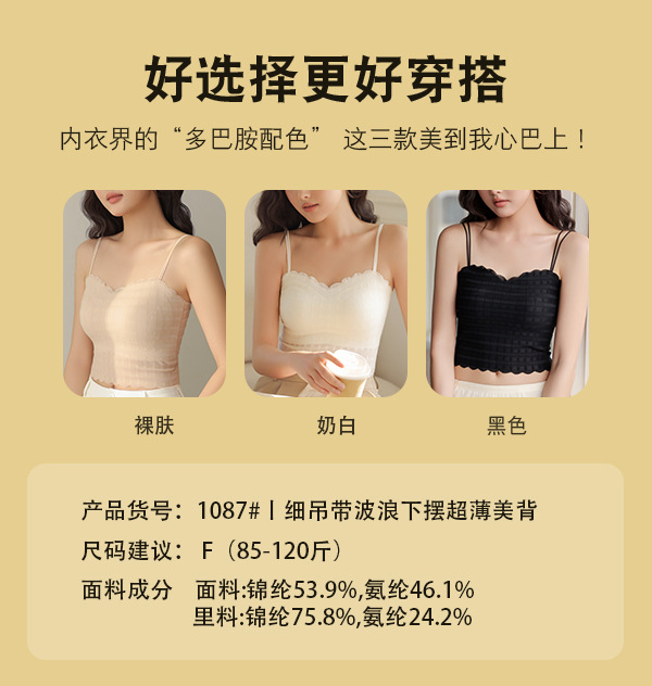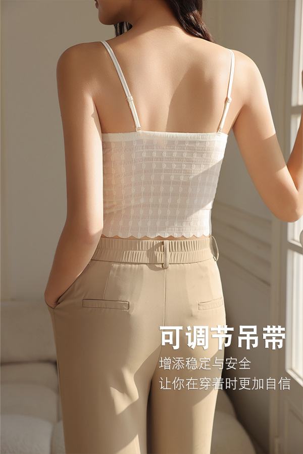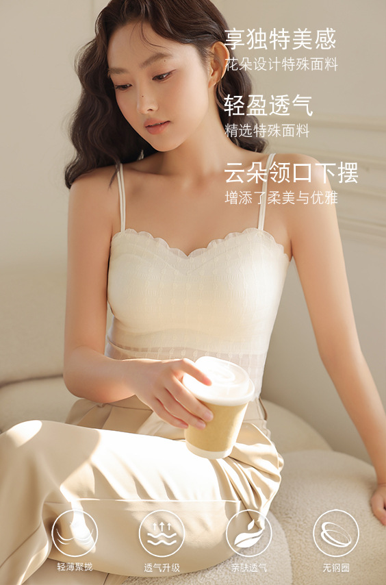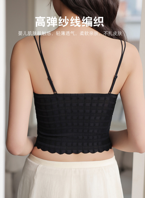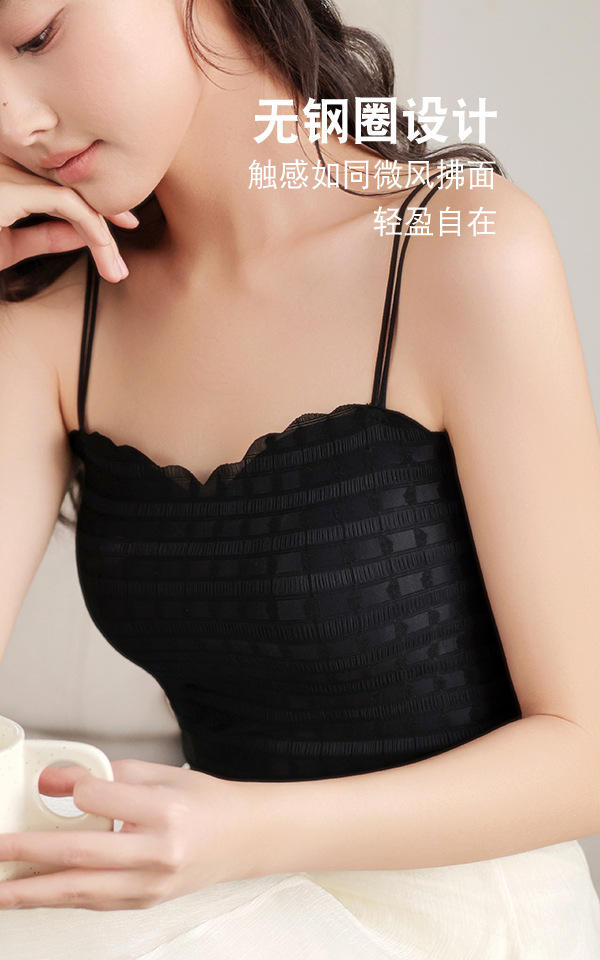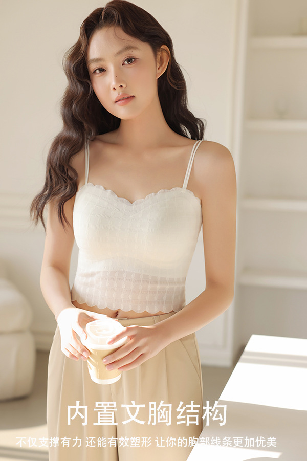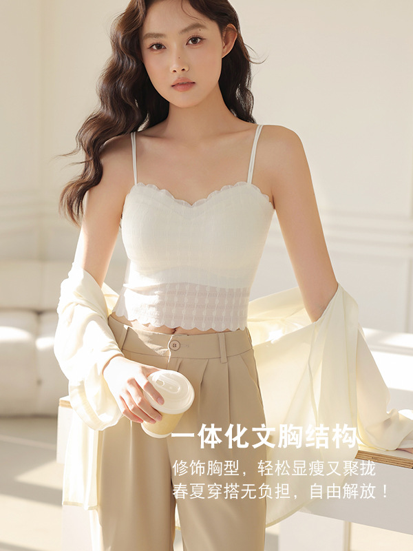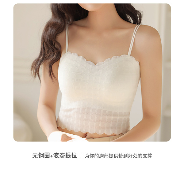 가슴 패드가 있는 레이스 서스펜더 조끼, 여성용 고정 컵, 아름다운 등, 섹시한 노출 방지 아우터 튜브 탑