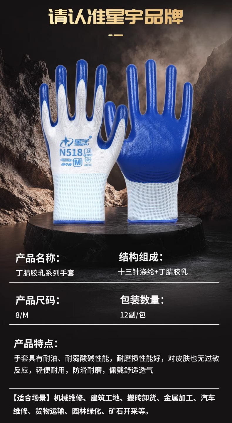 Xingyu N518 니트릴 노동 보호 장갑 내마모성, 내유성, 미끄럼 방지, 통기성 노동 작업 현장 보호 장갑
