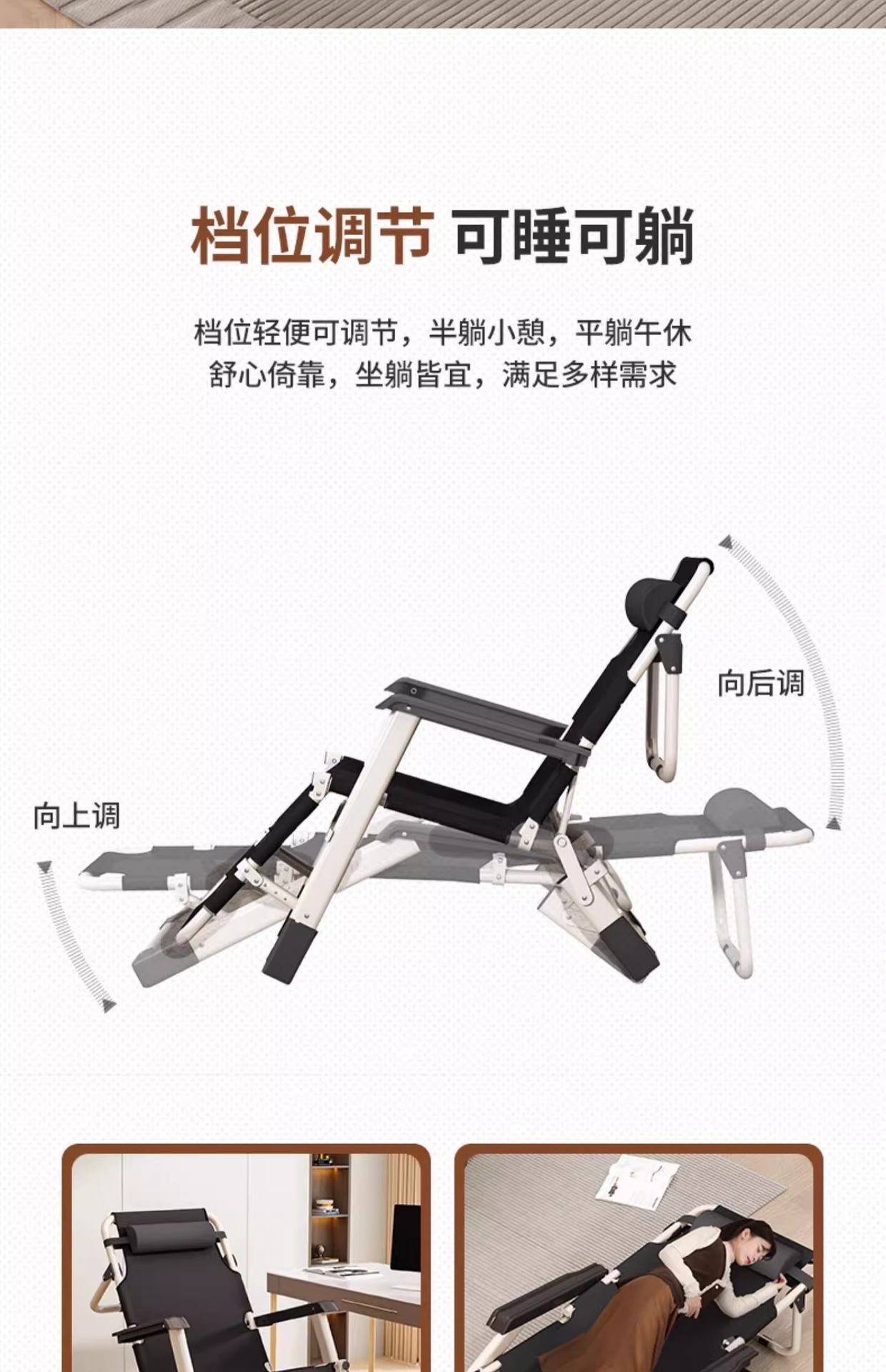 노인을위한 안락 의자 점심 시간 접이식 등받이 의자 홈 접이식 침대 발코니 레저 앉기 및 잠자는 레저 사무실 이중 목적 의자