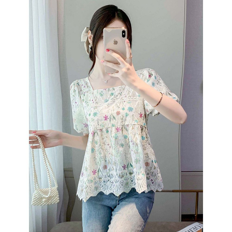 여성을위한 프랑스 꽃 쉬폰 셔츠 여름 2025 새로운 느슨한 달콤한 퍼프 슬리브 패션 탑 아름다운 셔츠스토어 가기