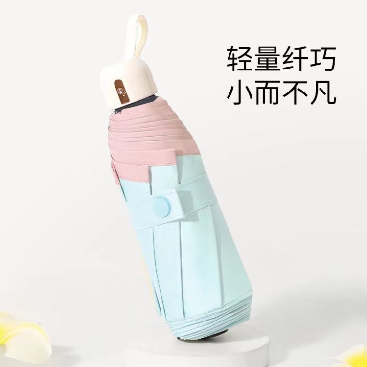 공장 스팟 도매 50% off 컬러 플라스틱 포켓 캡슐 우산 태양 보호 파라솔 비 또는 샤인 태양 우산 미니 우산