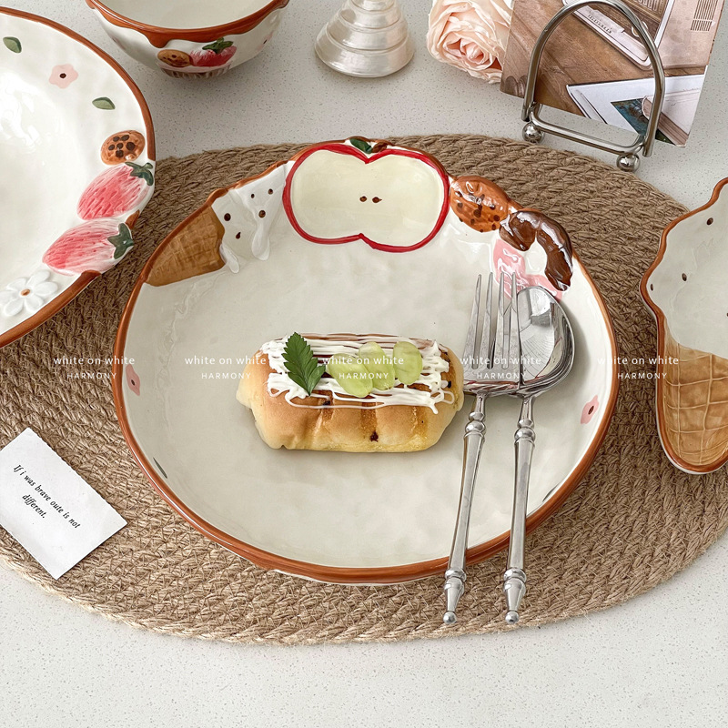 아침 식사 접시, 고급스러운 저녁 식사 접시, 가정용 밀짚 모자 접시, 애프터눈 티 디저트 접시, 세라믹 과일 샐러드 접시, 디저트 접시스토어 가기