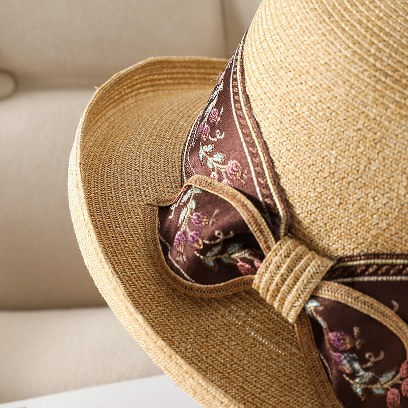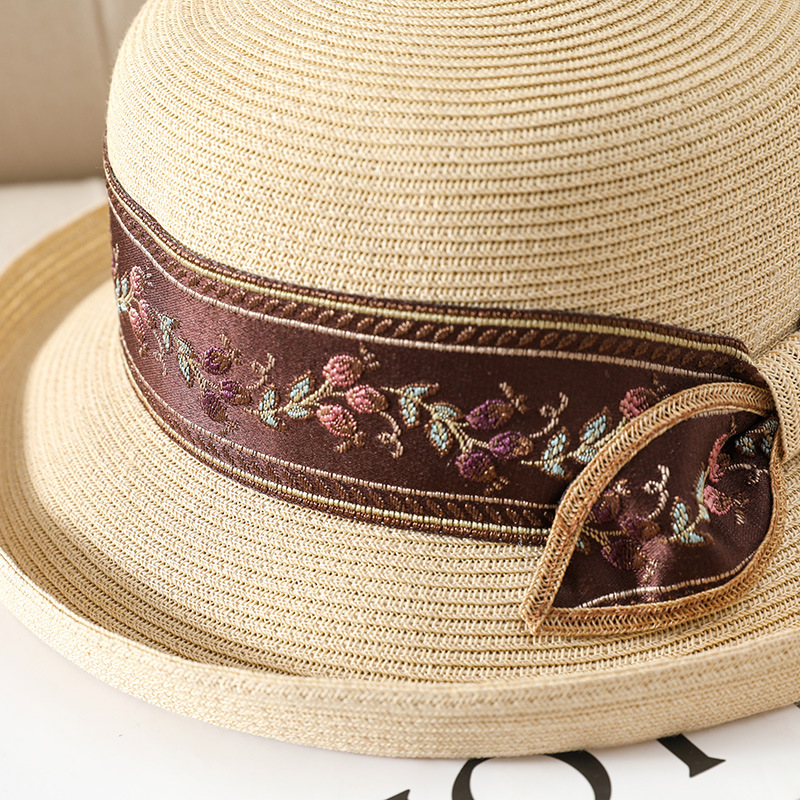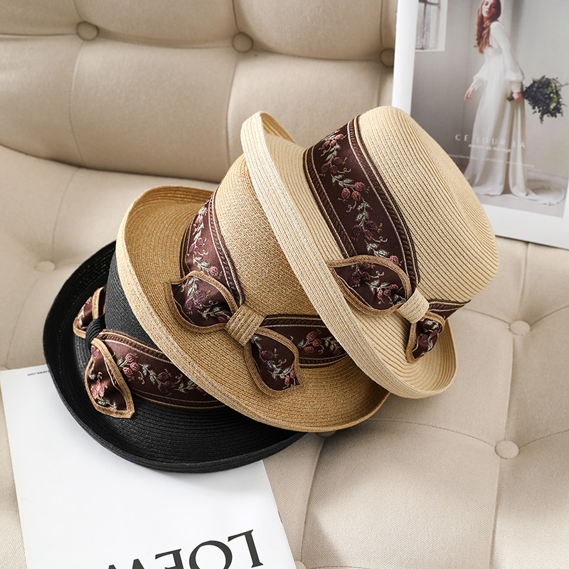 여성을 위한 새로운 여름 자외선 차단제 얼음 실크 밀짚 모자, 야외 해변 자외선 차단 모자, 우아한 기질과 우아한 모자스토어 가기