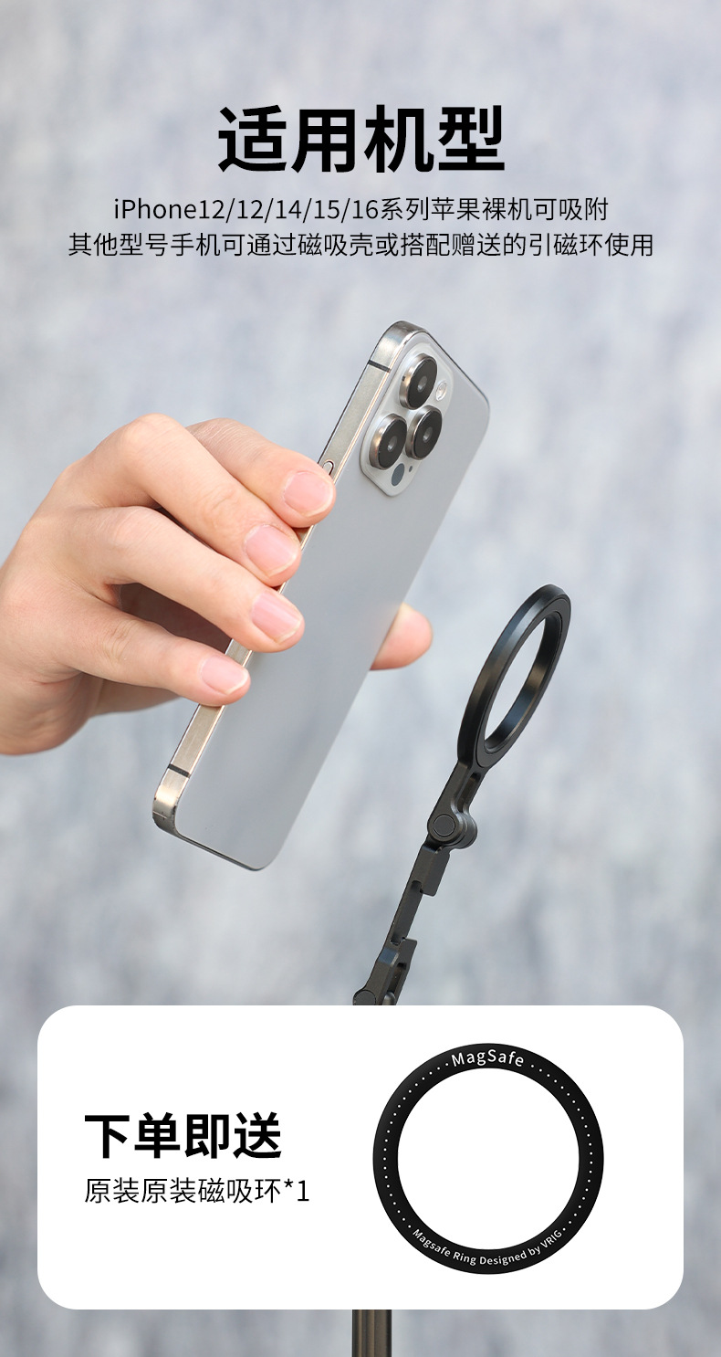 금속 자기 접이식 휴대 전화 스탠드 접이식 사진 라이브 1 인칭 MagSafe 다기능 수평 및 수직 촬영스토어 가기