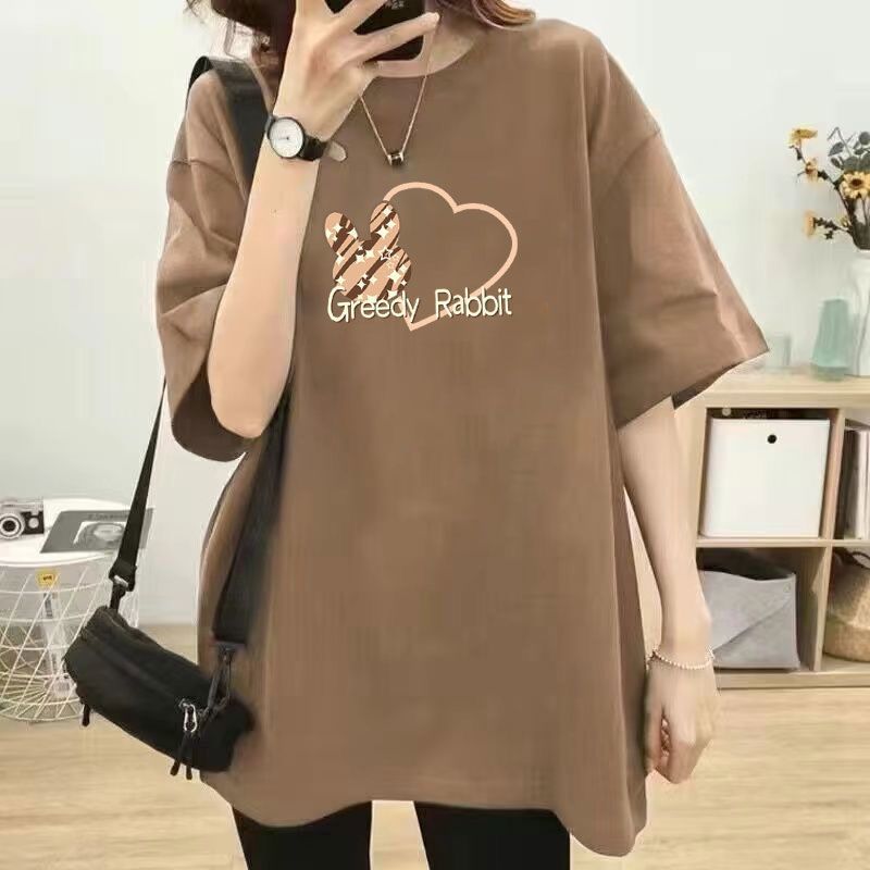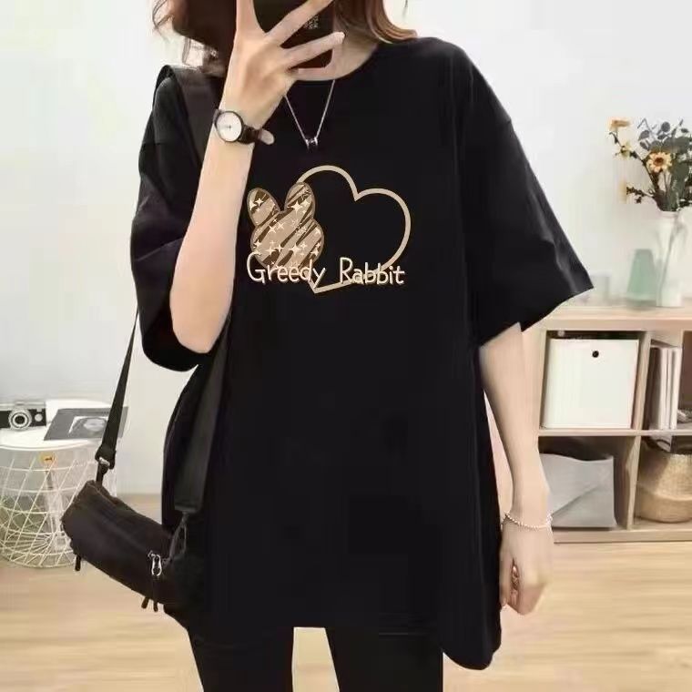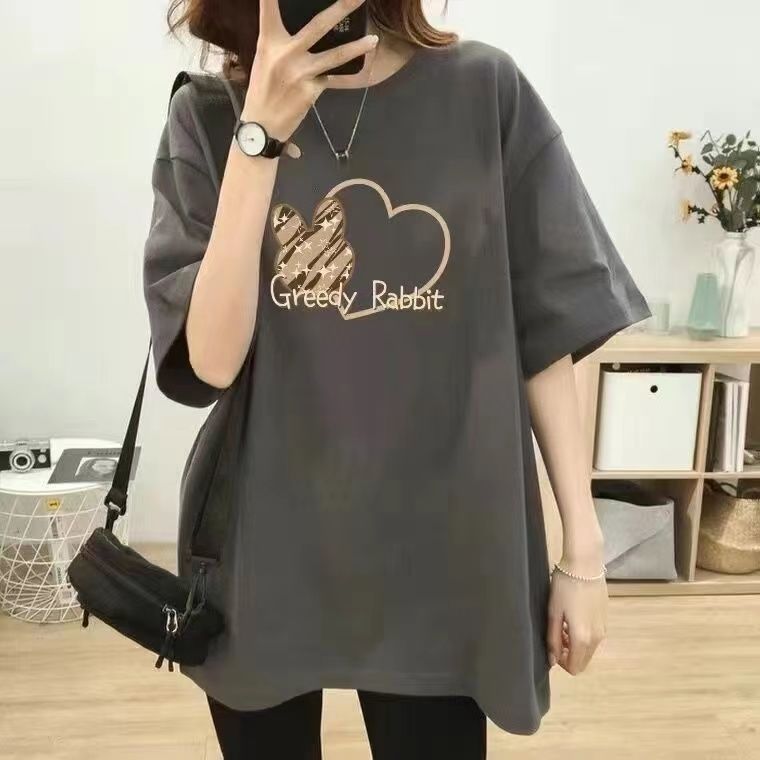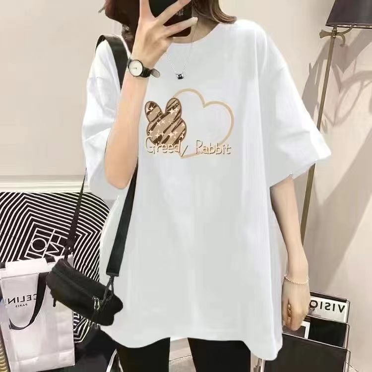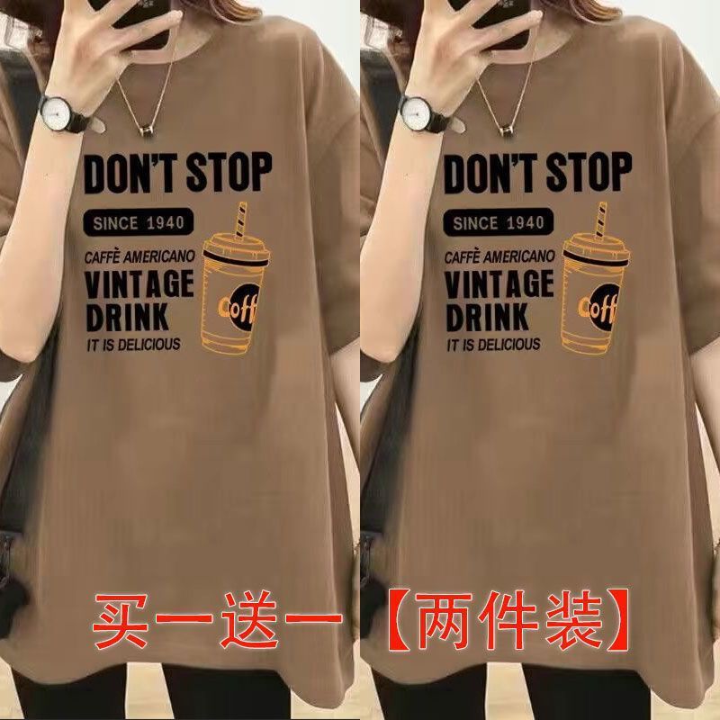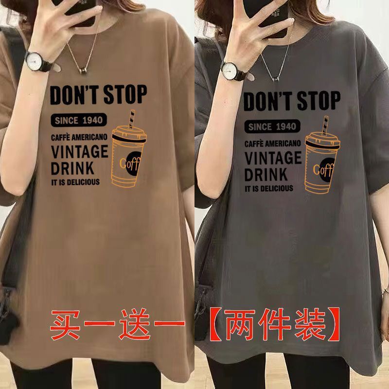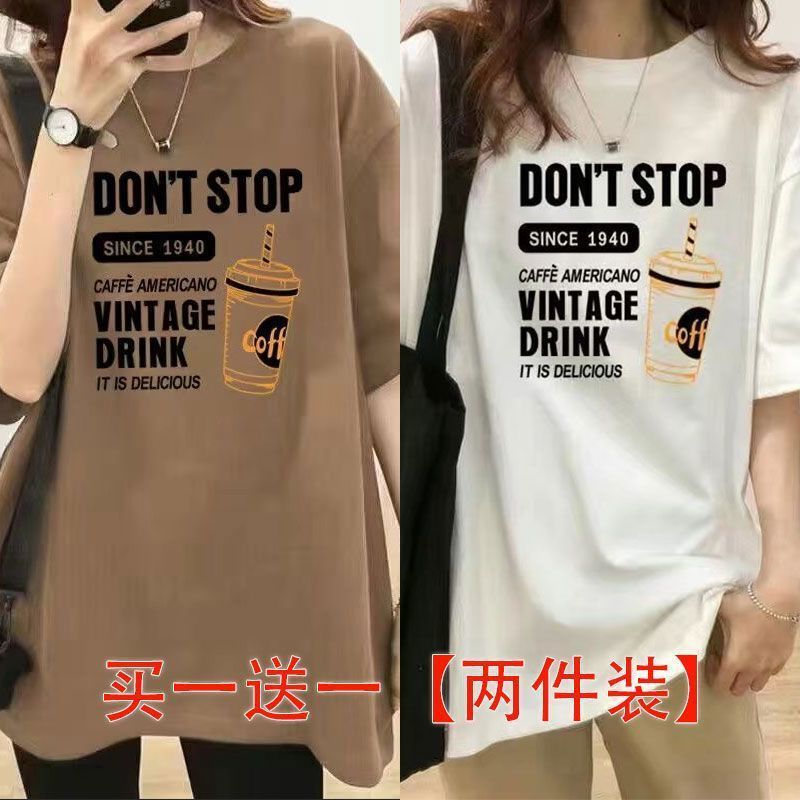하나 사면 하나 무료로 여성용 중간 길이 반팔 티셔츠, 루즈하고 슬림한 디자인, 외국 스타일, 연령 감소, 게으른 스타일, 다용도 탑스토어 가기