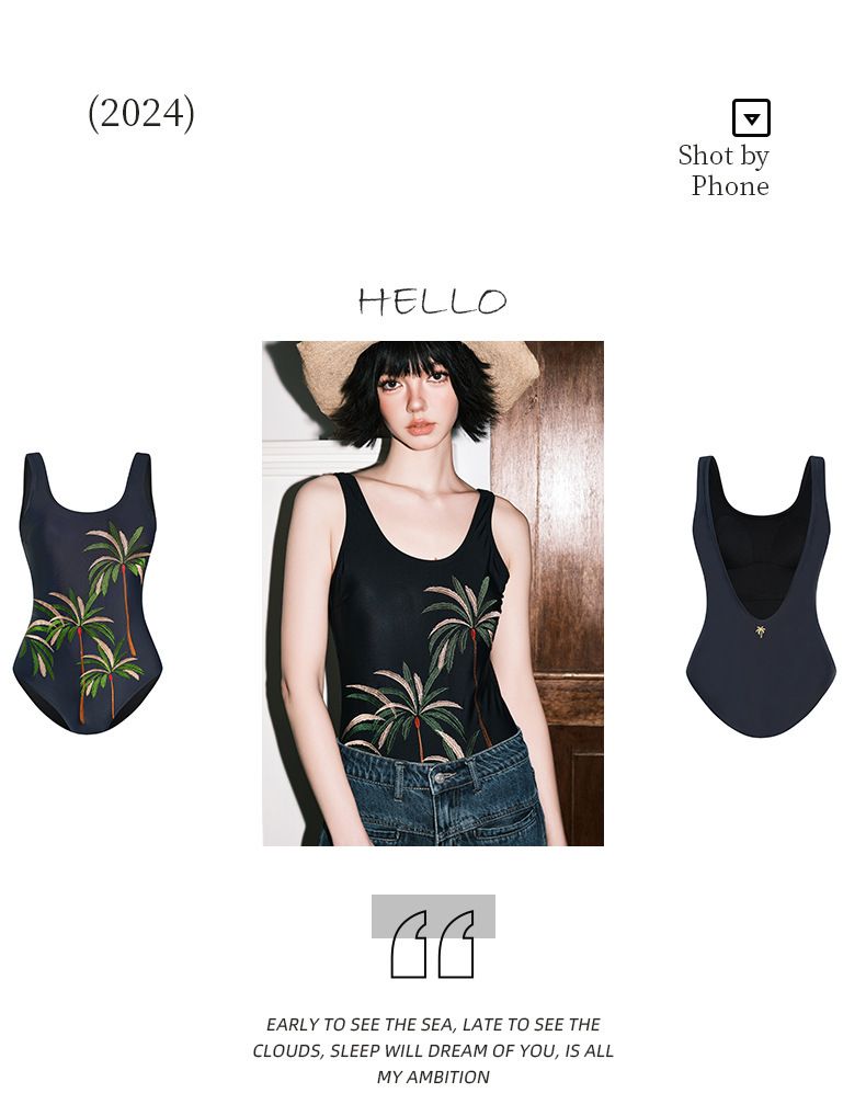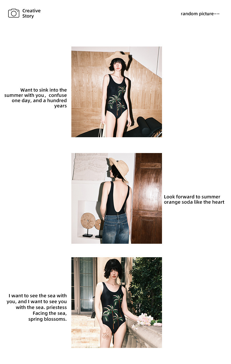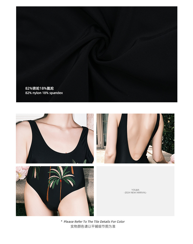 2025 새로운 원피스 수영복 여성 크로스보더 아마존 섹시한 등이없는 꽉 코코넛 나무 패턴 수영복 비키니